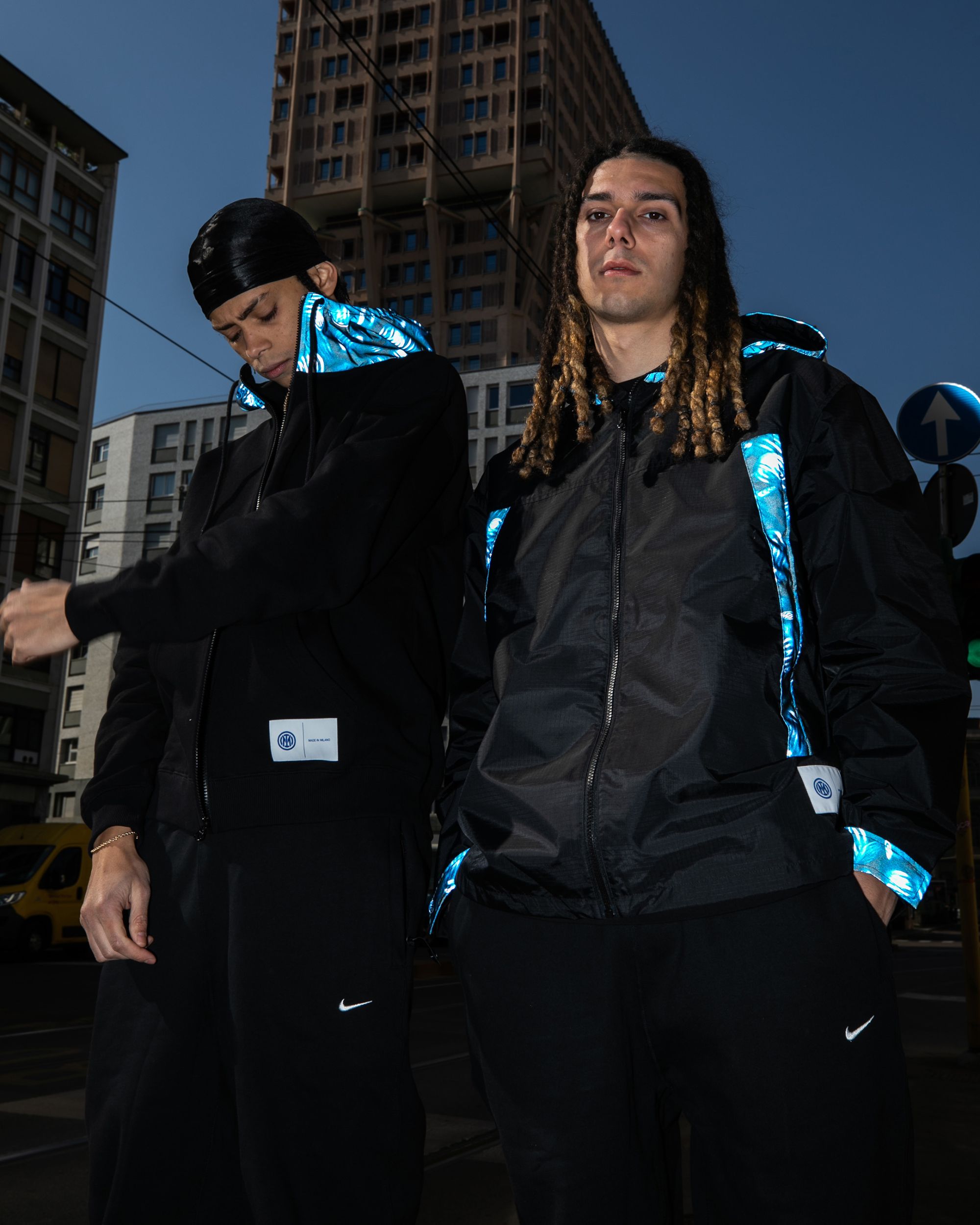 In keeping with the collection's aesthetic, the materials and graphics have also been reworked in a new key and feature an inlaid pattern consisting of a series of dynamic Inter crests in the iconic colours of black and light blue on high-visibility reflective material that changes when the light hits it. The campaign for the Capsule Collection was shot by One Block Down, who chose Don Pero, one of the hottest names in the Italian music scene, as the face.