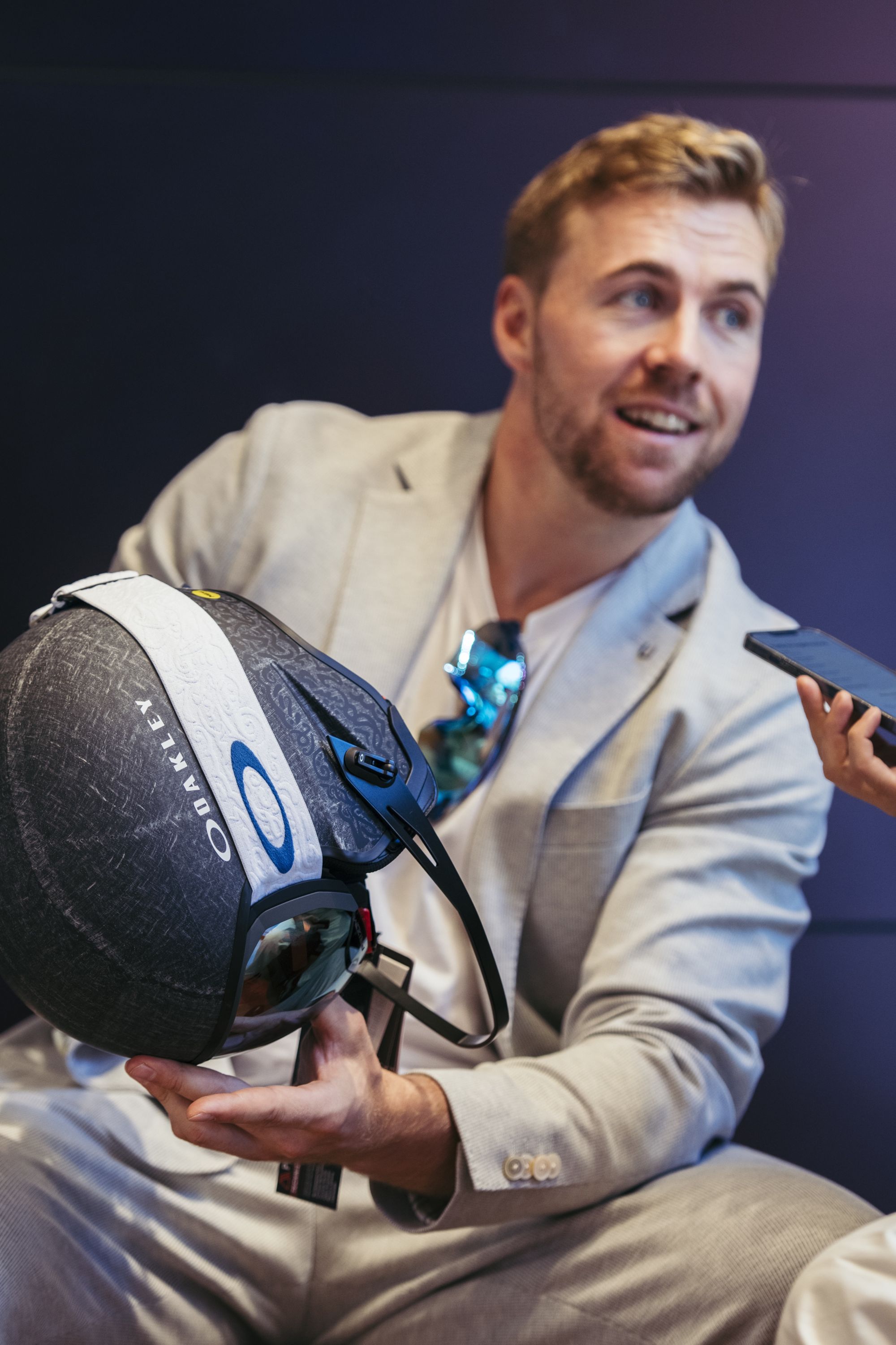 Although the sun is still high in the sky and the temperatures don't seem to be dropping, the alpine ski season will soon begin and the best are ready to plunge down the steepest snow slopes in the world. And in the downhill, everyone will be chasing the reigning world champion Aleksander Kilde, who will be competing with a new look. The Norwegian skier will in fact be wearing the new helmet and ski goggles he designed together with Oakley, his historic technical sponsor, which will be launched on 19 October. We met him at the brand's flagship store to talk about his upcoming goals, his work with Oakley and the road to the 2026 Olympic Games in Milan/Cortina.