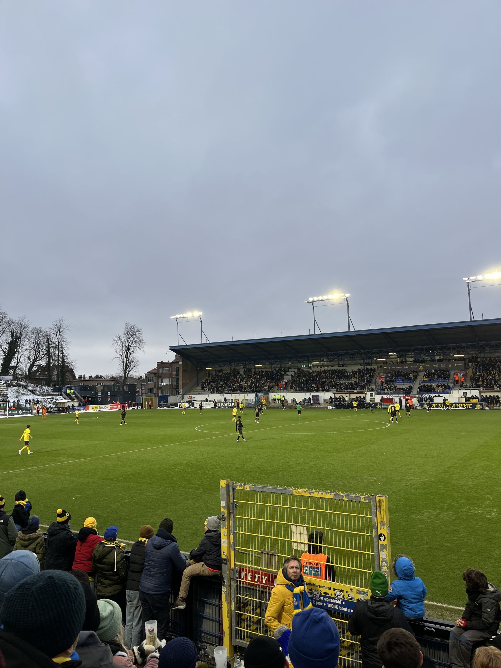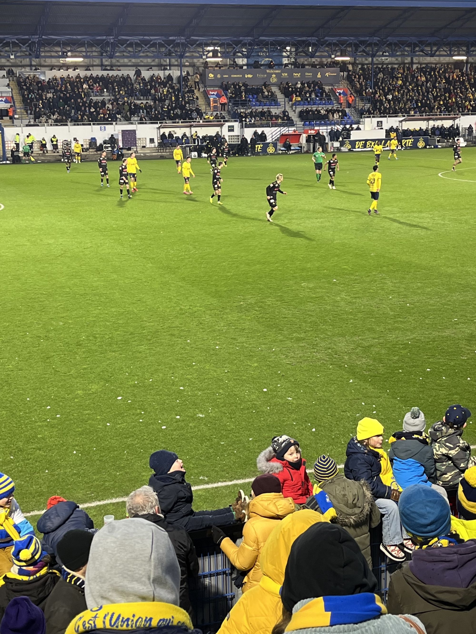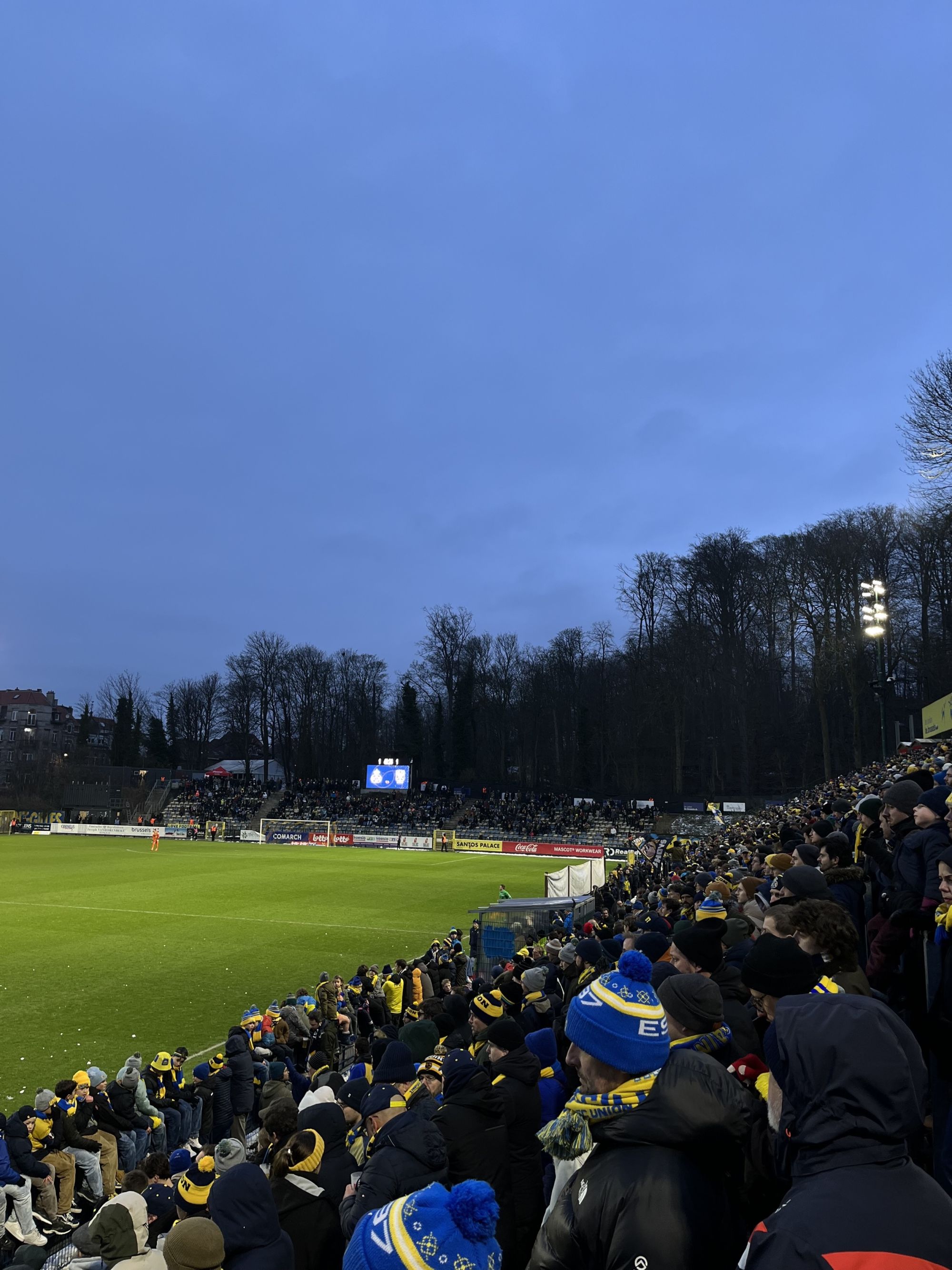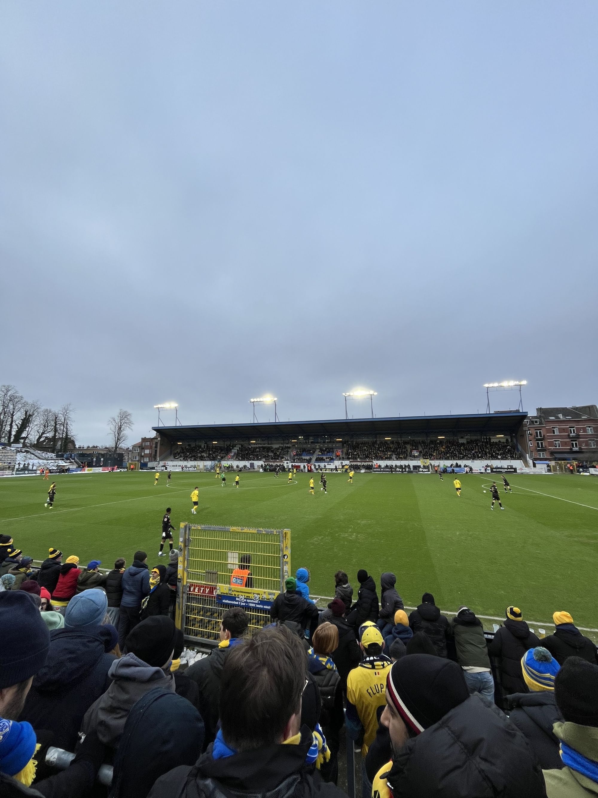 The game begins. The 1980s experience is reflected in the absence of seats in the stands: there are comfortable iron railings for spectators to lean on - it had snowed a few days earlier and at -2 degrees there is a lot of ice - and there is no roofing. In the front rows, children in yellow and blue scarves play, while behind them the parents all hold glasses of Jupiler beer, the brand that sponsors the championship, which they then take back to the various stands at the end of the game. The game goes off without any insults or jibes from the fans, either to each other or to the opposing players. There are hardly any protests against the referee and, to be honest, some fans are more concerned about the fate of the team, which has been decimated by the African Cup of Nations, which has taken away, among others, Algerian striker Mohammed Amoura, who has already scored 13 goals this season.