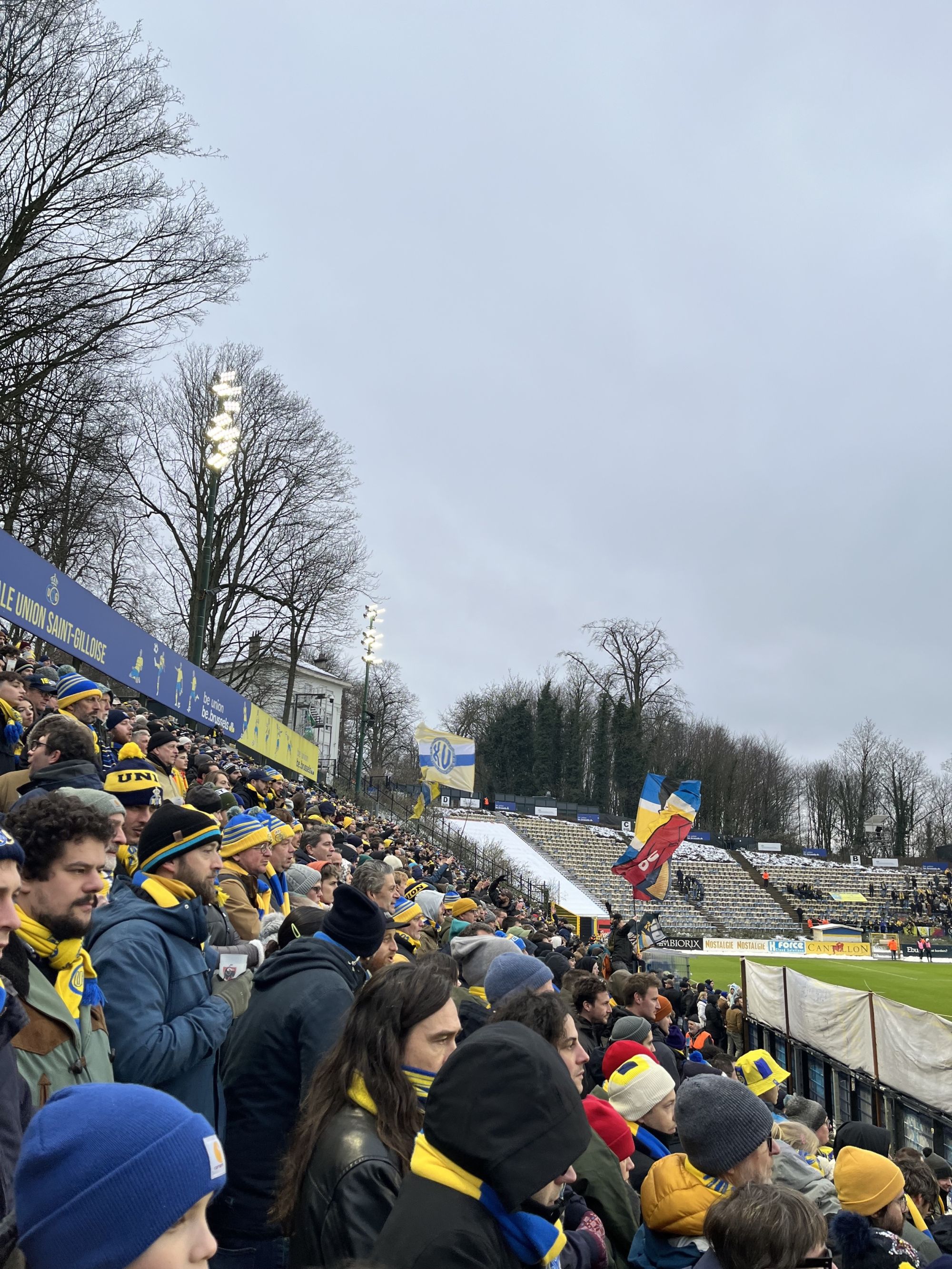 A major influence on USG's sporting reality in 2018 was Tony Bloom, an English entrepreneur and owner of Brighton & Hove Albion F.C. in the Premier League, who took over the club's majority stake in the Joseph Maria Stadium, a facility with almost 10,000 seats in the Saint Gilles district of Brussels. When I took a look at it before the game against Sint Truiden, the St. Mary's Stadium was, at first glance, what we call an English-style stadium. Nestled in the neighborhood between a park and houses, with beer stands surrounding the entrance gates, attending a USG game is an experience somewhere between retro and Sunday leisure.
