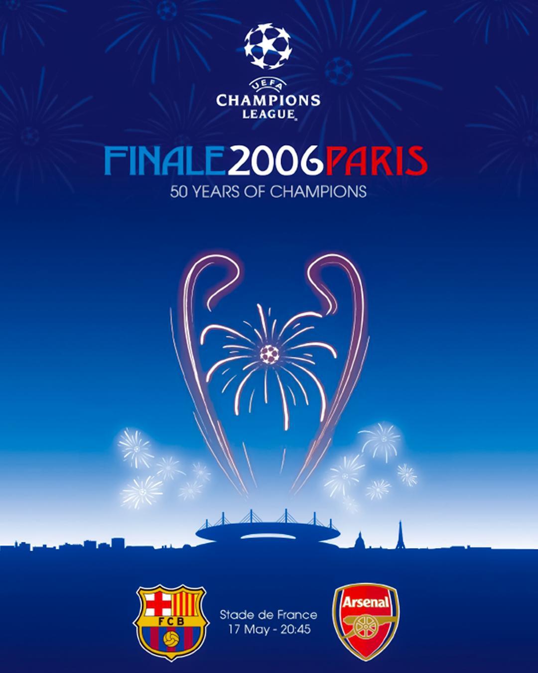 On the poster, tickets and all promotional content for Barcelona ‘99, the design pays homage to Joan Miró, another icon of the Catalan art scene. Like Caballé, the famous painter and sculptor has also been a testimonial for a major sporting event in the country: the 1982 Mundial, for which he designed the official poster, one of his last works. UEFA's inspiration to create a unique visual identity for each final seems to have its roots in the major events organised by the Olympic Committee and FIFA, which traditionally seek to capture cultural and urban heritage in visual content. The result was an energetic, vibrant poster with a design in the classic style (surrealism) of Miró, warm colours and strong contrasts. After creating an ad hoc logo and anthem in the early 1990s, UEFA obviously paid more attention to the artistic component of these events. And after the experiment in Barcelona, the course was set, as the following stages confirm: For Paris (2000 and then again in 2006 for the 50th edition), the colours of the French flag were chosen, with a design in the centre reminiscent of the Eiffel Tower (rather defilade in the second case); for Milan (2001), the focus is on an elegant design and a theatre curtain alluding to La Scala, for a final themed "The Opera of Football"; in Athens (2007), the choice of colours also refers to the flag and the design presents a fantasy in the classic Hellenic style.