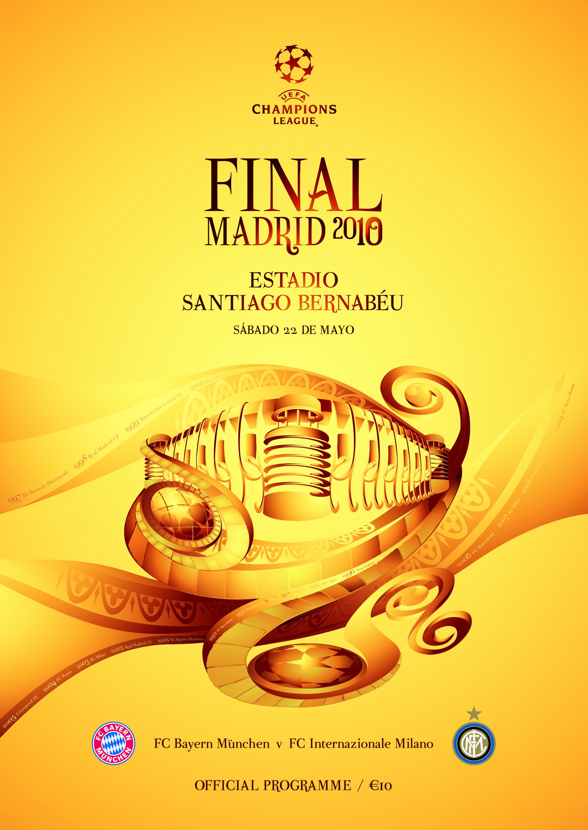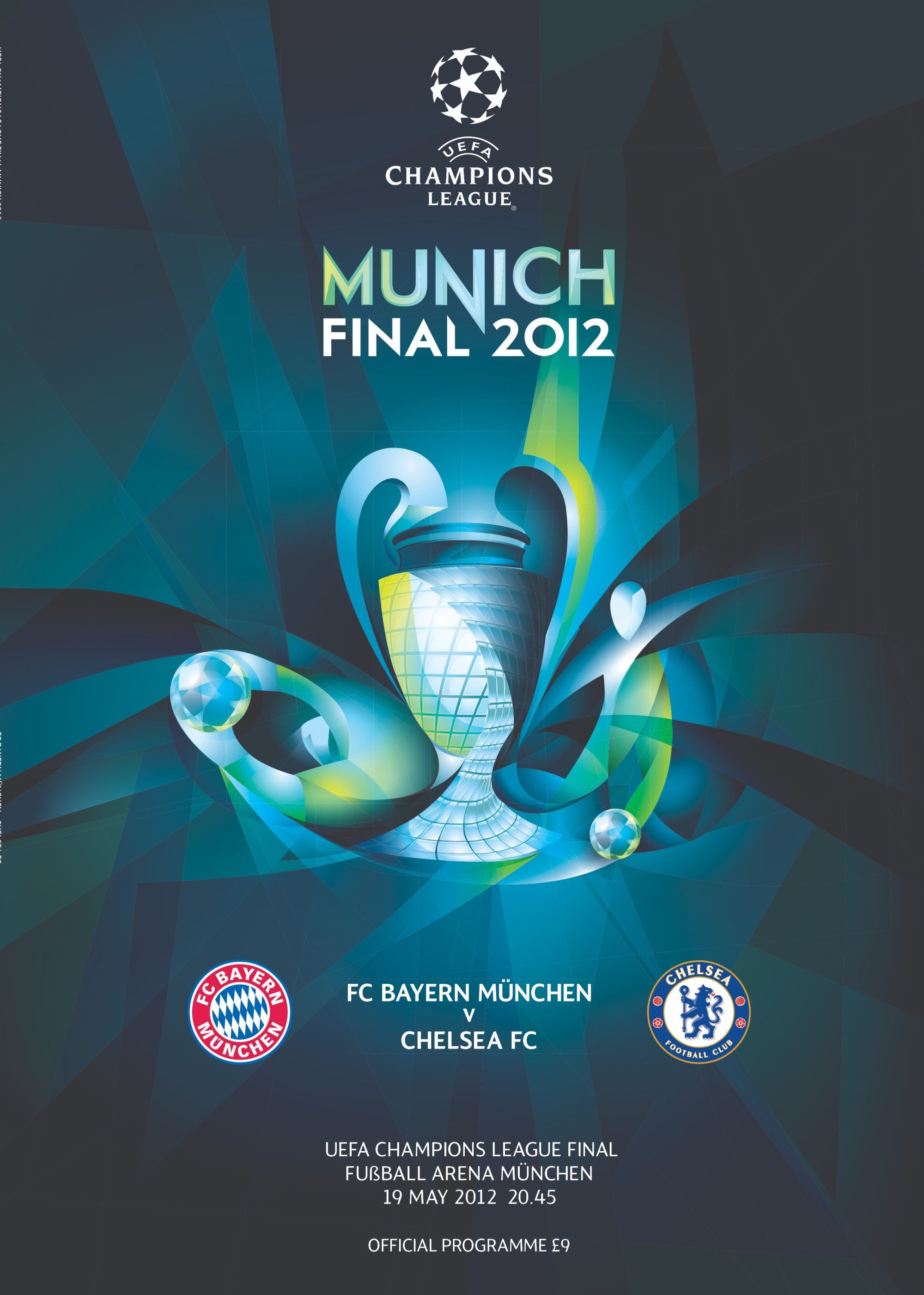 At the final in Moscow (2008), another element will be used on several occasions, this time the architectural inspiration: the (stylised) skyline of the city, in which the Kremlin stands out clearly; on the same wavelength is the communicative result of the following year in Rome (2009), where the Champions League trophy is placed on a corner of the Colosseum; finally, for Madrid (2010), the focus is on a design featuring the stylised silhouette of the Estadio Santiago Bernabeu, framed in sinuous patterns decorated with the classic Champions League star. Subsequently, Wembley hosted the final twice in three editions: in 2011, a simple, minimalist design was presented with the English lions holding the trophy, with white figures on a bluish background and red lettering. In 2013 - the edition celebrating the 150th anniversary of the founding of the English association - a less striking illustration was chosen instead, namely a series of rays of light illuminating the silhouette of the trophy and creating a scenery of flat, abstract and not very dynamic geometries that do not stand out at all against the blue background. In the final at the centre, the match in Munich in 2012 where Chelsea became champions for the first time, the complexity of the overlays, shading and flashes of light that form an authentic mosaic of irregular shapes with blue-green hues, from which a leaping goalkeeper and a figure about to shoot stand out, is remarkable.
