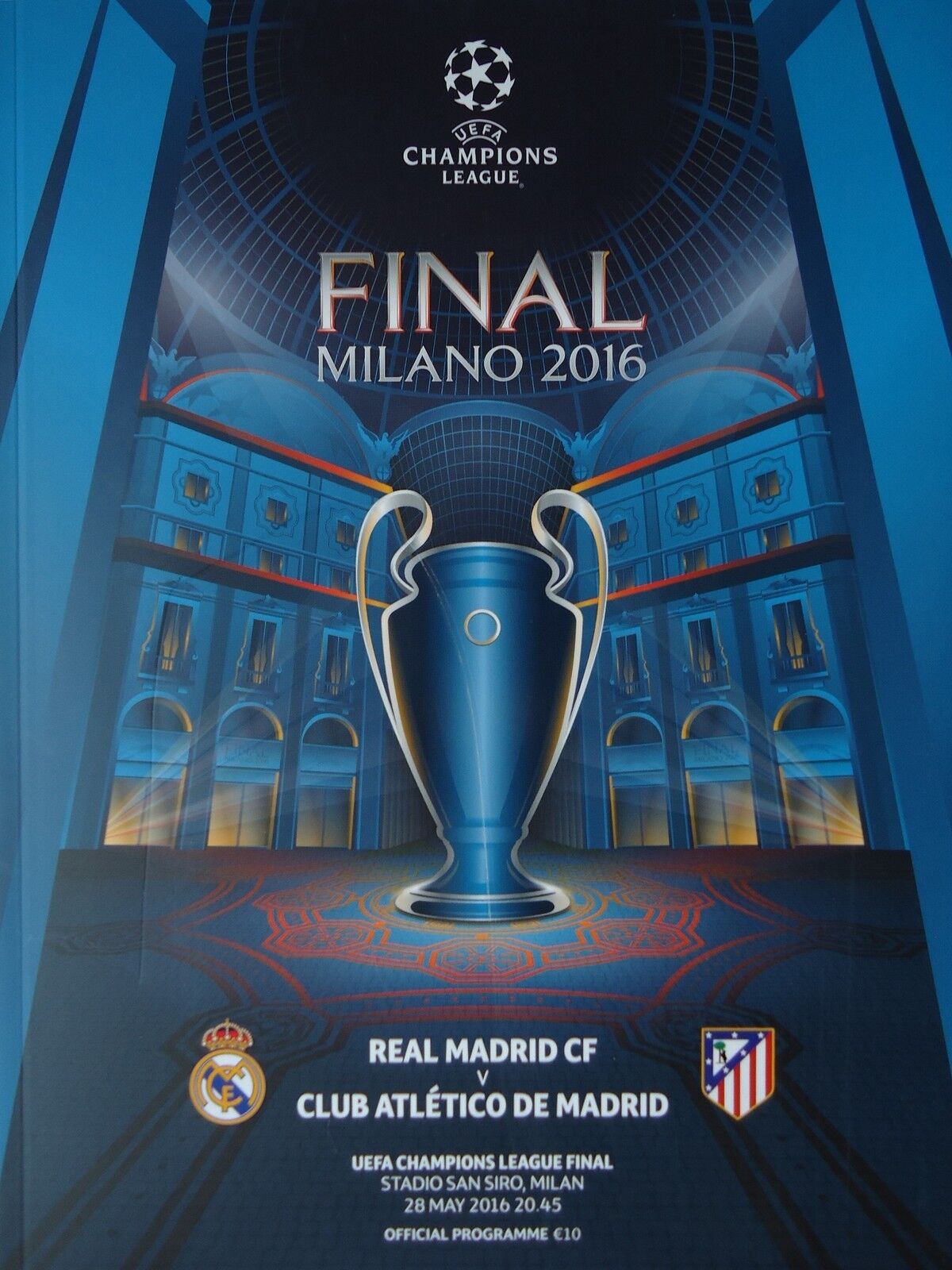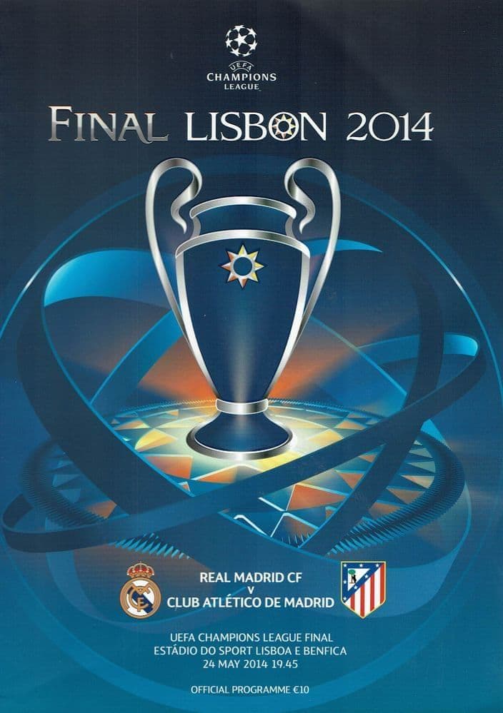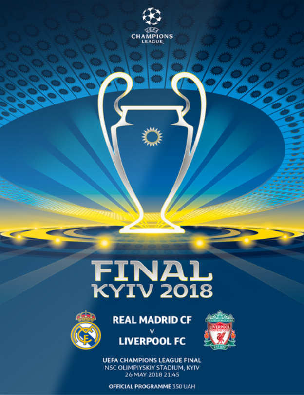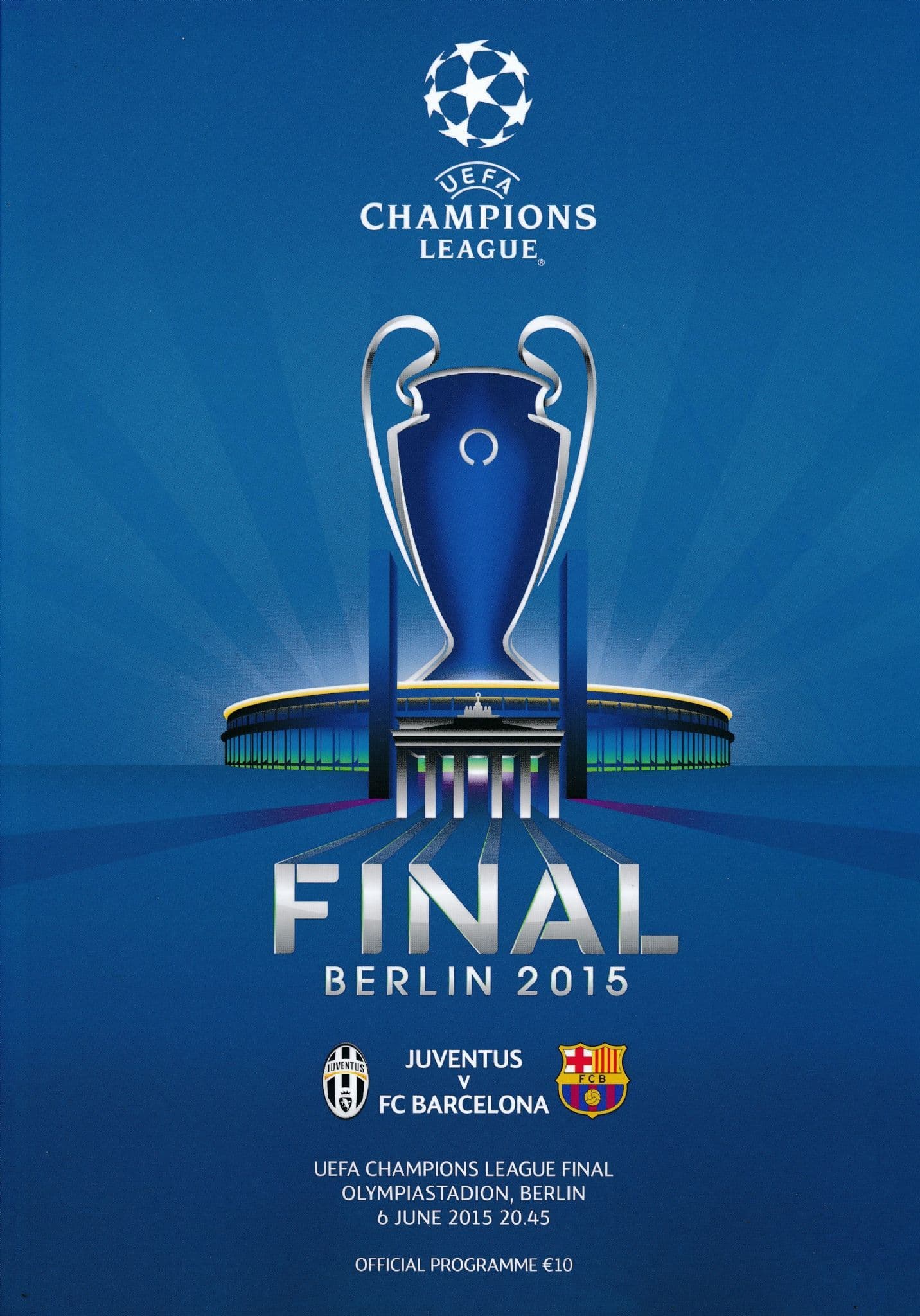 Since the 2014 final in Lisbon, UEFA has delegated the task of illustrating the finals to the London-based creative agency Designwerk. Over the following four years, the graphic design of the event became more consistent and coherent, both in terms of iconography and colour scheme: Champions blue became the predominant colour in all designs. The first work pays homage to the Portuguese naval tradition: a giant moving spinning top surrounds the trophy, which rests in the centre of a luminous compass rose depicted in small size in the trophy's belly. For Berlin 2015, the basic idea is much more sober: in a huge monochrome background, the trophy rises above the Olympic Stadium in the distance, while the shadows of the pillars of the Brandenburg Gate form the word "FINAL". The following year in Milan, the Galleria Vittorio Emanuele II is the setting for the visual identity, while in Cardiff the Welsh dragon is the protagonist, proudly clutching the trophy. The dress for the final in Kyiv, on the other hand, is reminiscent of the colours of the Ukrainian flag and the hypnotic "hole" motif on the roof of the Olympic Stadium.