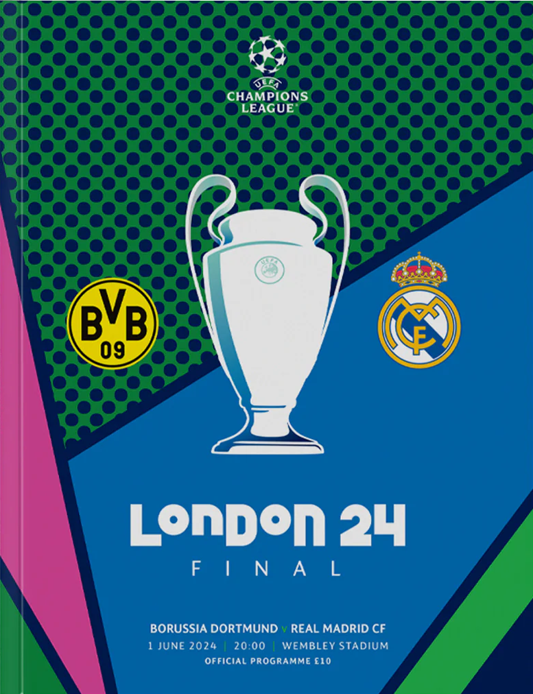 In contrast to Lisbon and Porto, the final in Paris was given its own identity, but its sparse, monochromatic design suggests an internal UEFA production rather than an external commission. To conclude this colourful review, we mention the final that will conclude the 2023/24 European football season tonight: The final in London also relies on an intricate geometric composition with intense colours, a multi-faceted graffiti that "reflects the energy and constant movement of the city with shapes that allude to iconic buildings and the vastness of the city while contrasting with green spaces".