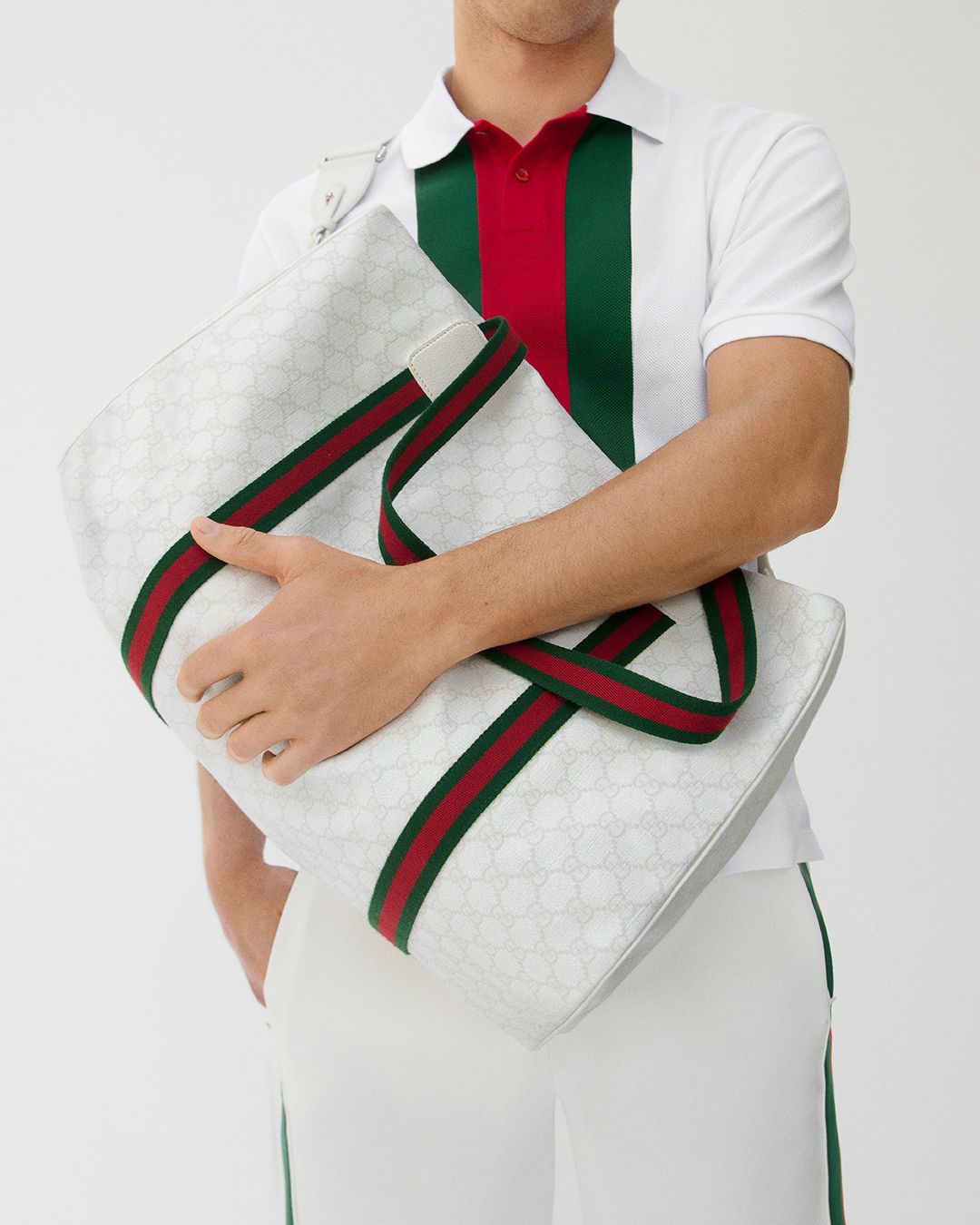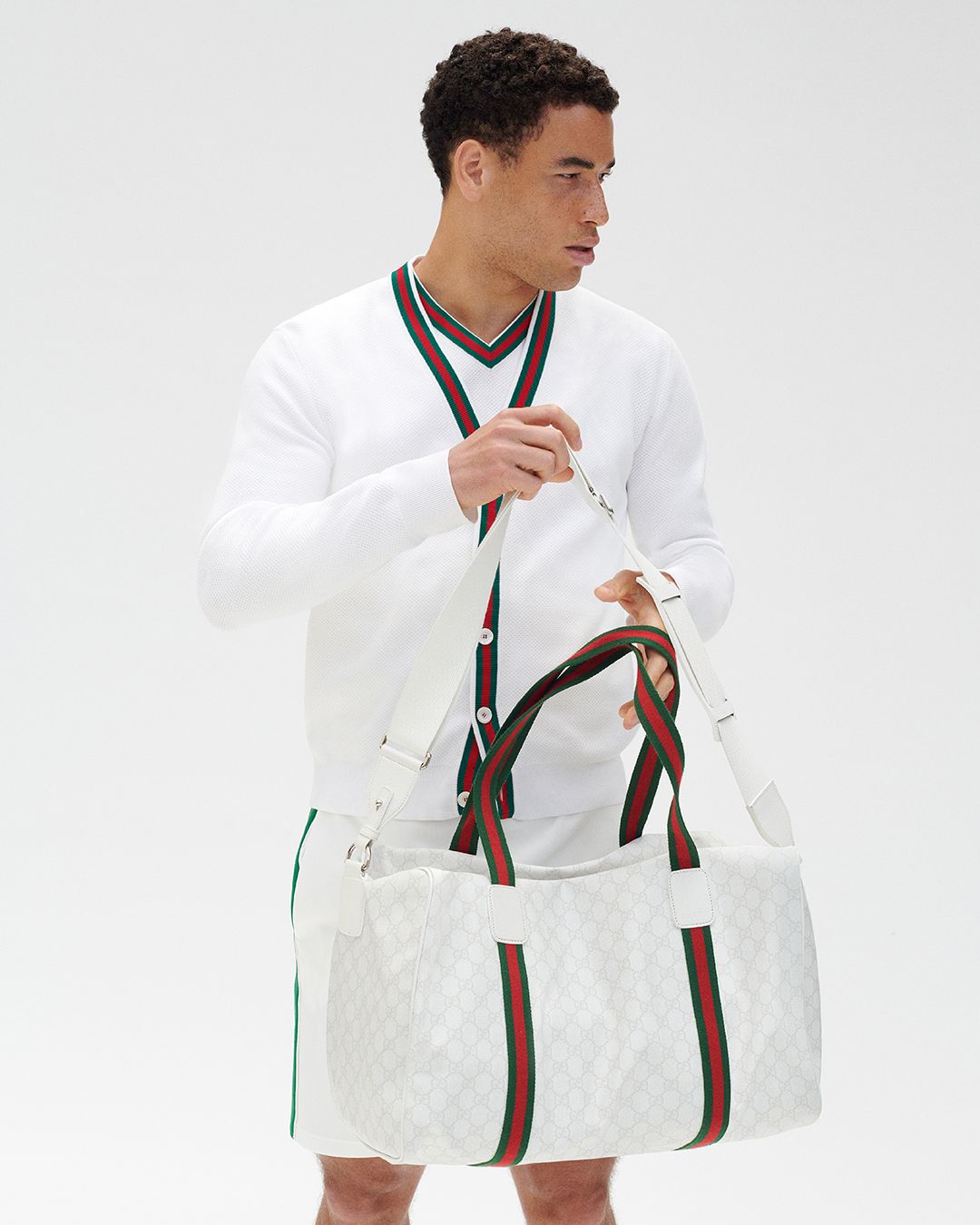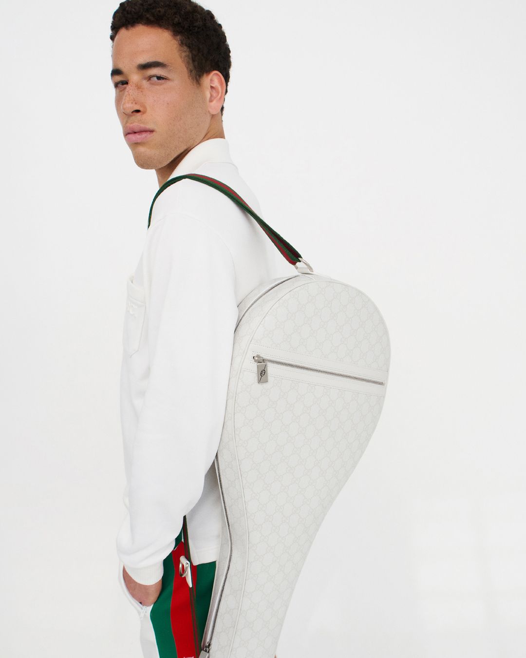 But the most exciting aspect of the collection lies in its extensive list of accessories, which will make you feel like Jannik Sinner when he steps onto the court at Wimbledon with his monogrammed bag featuring the iconic double G. The collection includes caps, wristbands, leather goods, and standout items such as a new duffel bag, a racket backpack, a racket bag, and a shoe holder, all adorned with the white-on-white GG monogram. It's an impeccable style for what is about to be the most crucial moment of the tennis calendar, with Wimbledon first and then the highly anticipated Olympics in Paris on the Philippe Chatrier court.