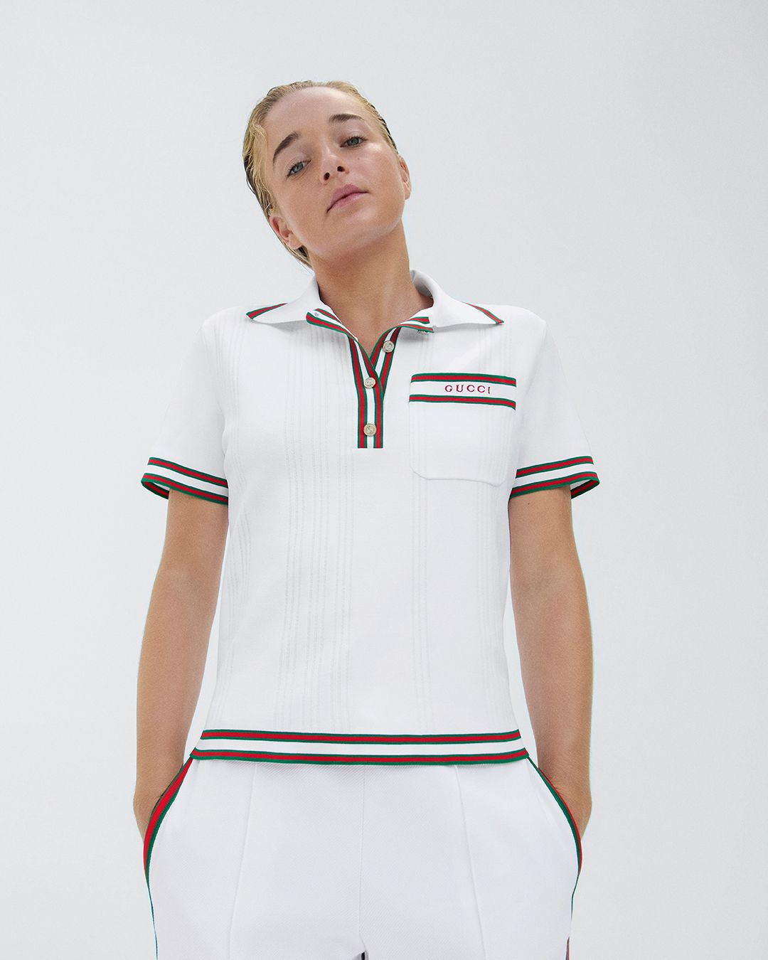 Tennis is undeniably the coolest sport of the moment, especially as Wimbledon approaches. This tournament is known worldwide for its sense of style, and Gucci doesn't want to be caught unprepared for the grass season. After all, one of the top testimonials for the Italian brand is Jannik Sinner, the number one tennis player in the world and the recent winner of the ATP 500 in Halle. He is also one of the favorites for the English Slam. The new collection, designed by Gucci's Creative Director Sabato De Sarno, is perfect for wearing at the "All England Lawn Tennis and Croquet Club", where tennis has been synonymous with style since 1877. As it is well known, none of the players on the Wimbledon grass can wear any color other than white, as it was the color that best concealed sweat stains, considered to be unrefined.