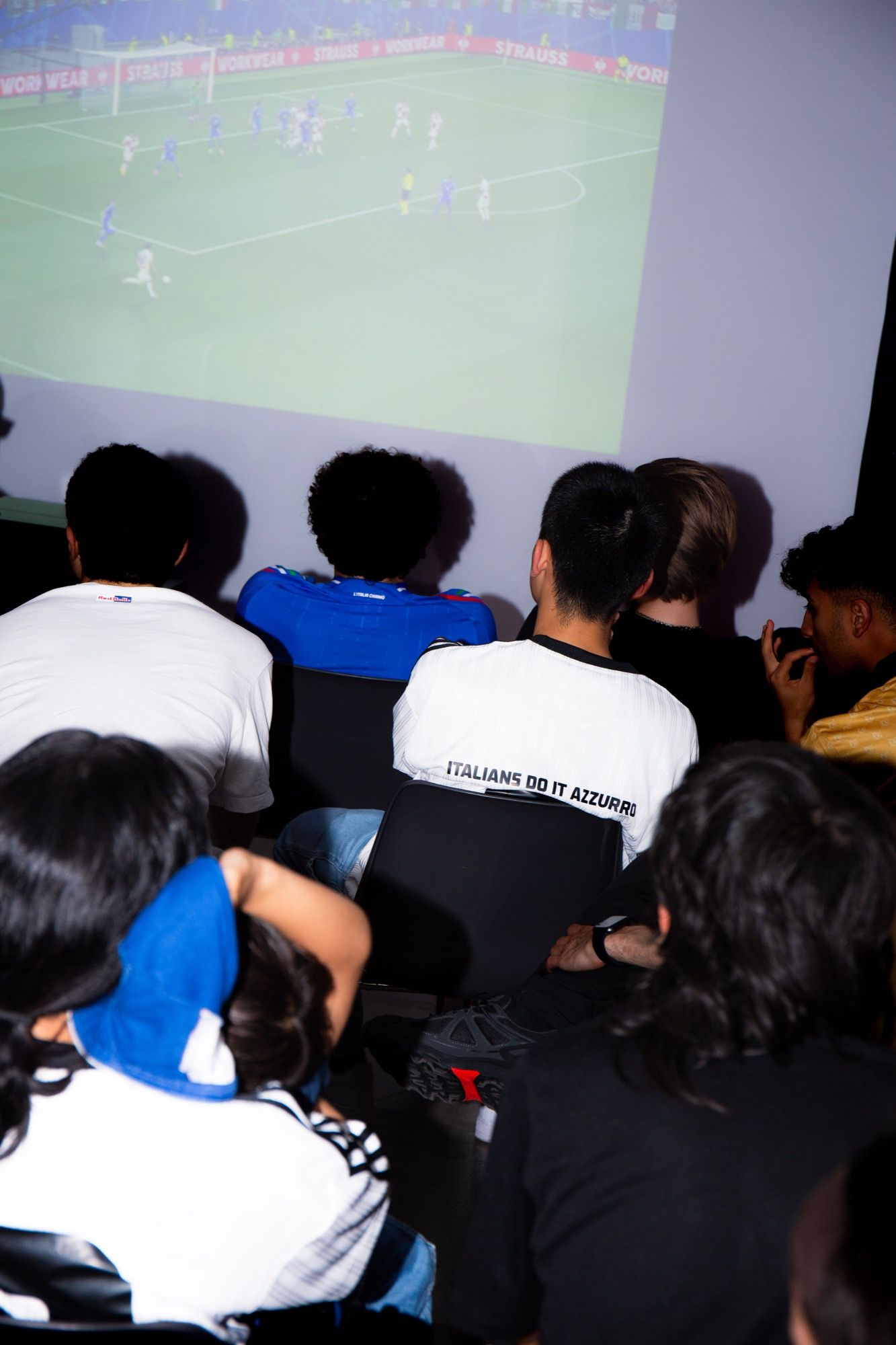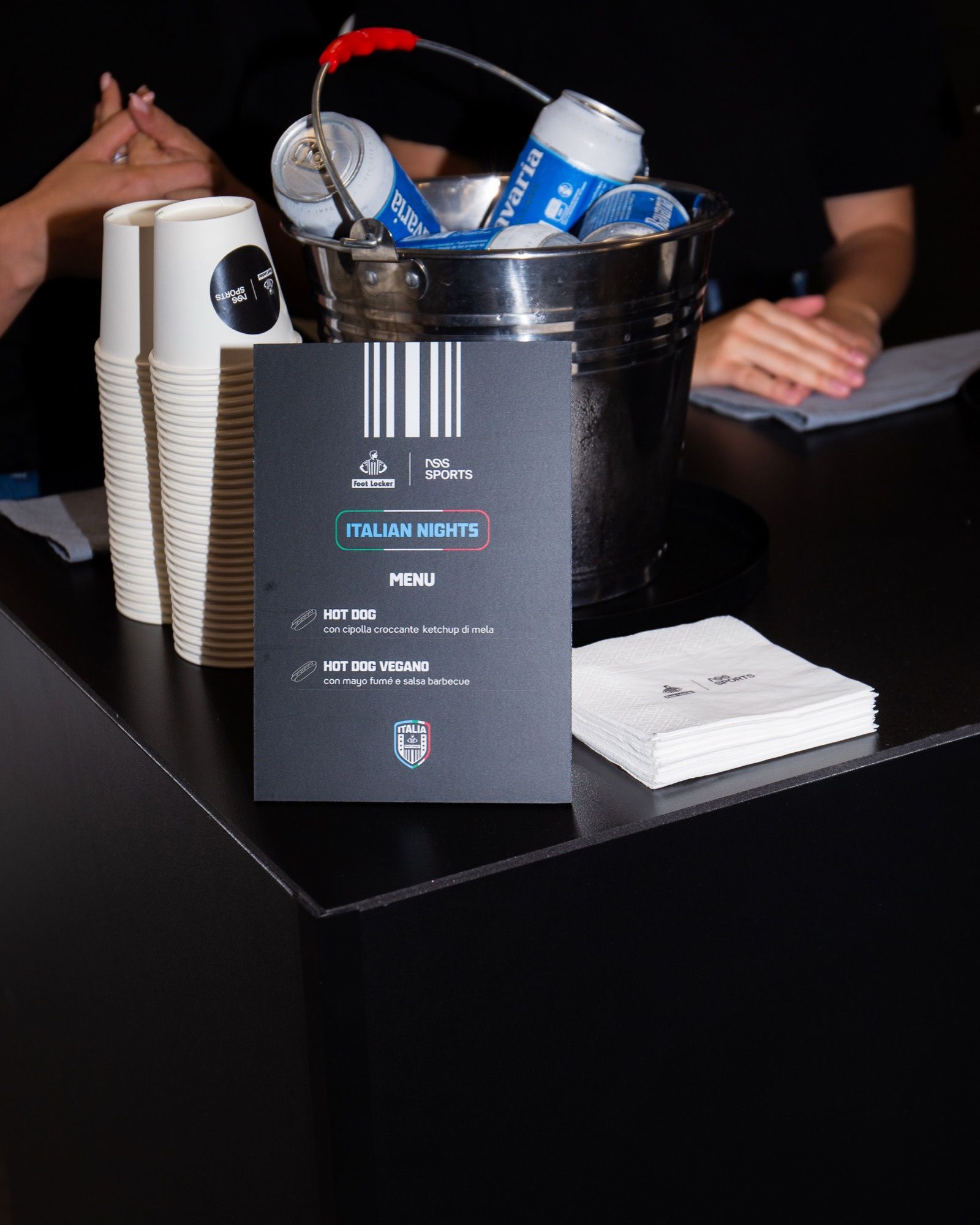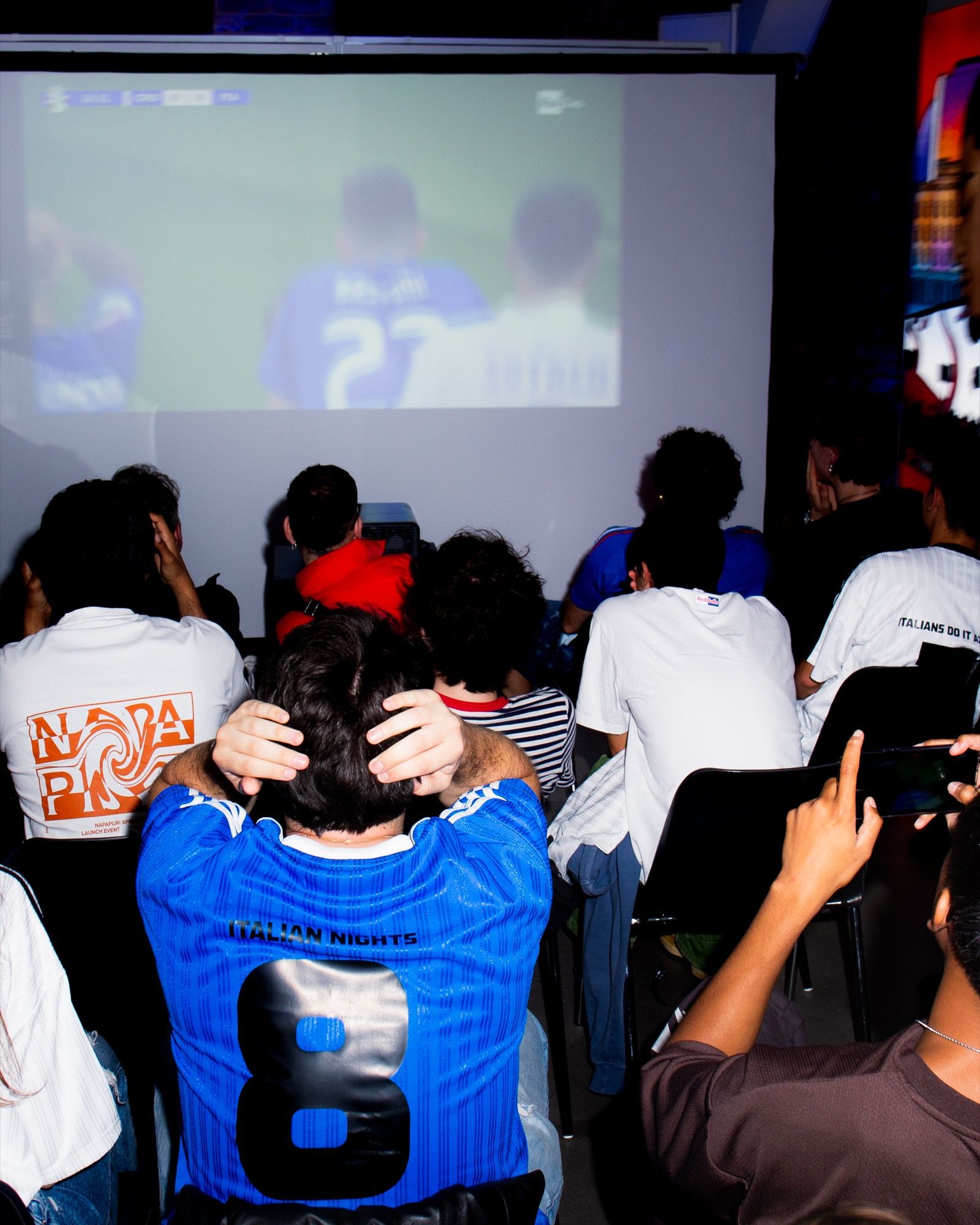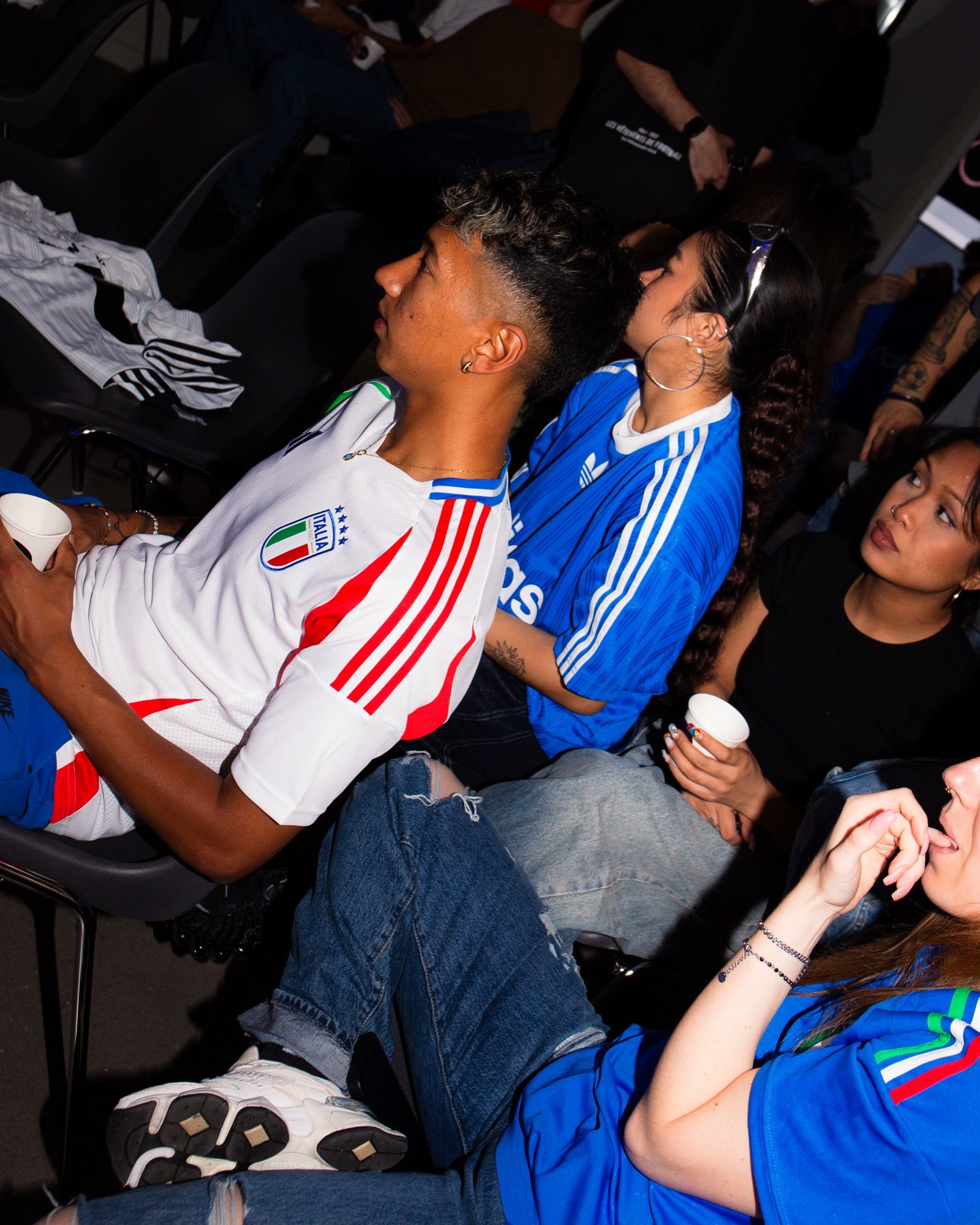 On the eve of Croatia-Italy, tension was palpable. Italy needed at least a draw to qualify second in a group dominated by Spain. It took until the 98th minute to score the decisive goal, thanks to Riccardo Calafiori's assist for Mattia Zaccagni, who tucked the ball into the net with a shot that vaguely reminded many of Alessandro Del Piero's in 2006, during the semifinals against Germany. We experienced it amidst the immersive atmosphere of the event organized by nss sports and Foot Locker at the brand's store (Corso Buenos Aires, 17, corner of San Gregorio) in Milan. The event was a great success, enhanced by a hip-hop DJ set and beers provided by sponsor Bavaria. Additionally, guests were able to personalize the jerseys they received as gifts - blue and white - embellishing them with their preferred number and iconic claims like "Italians do it better." We look forward to supporting the Italian National Team in their upcoming thrilling matches; the more they're considered underdogs, the more they showcase their pride.