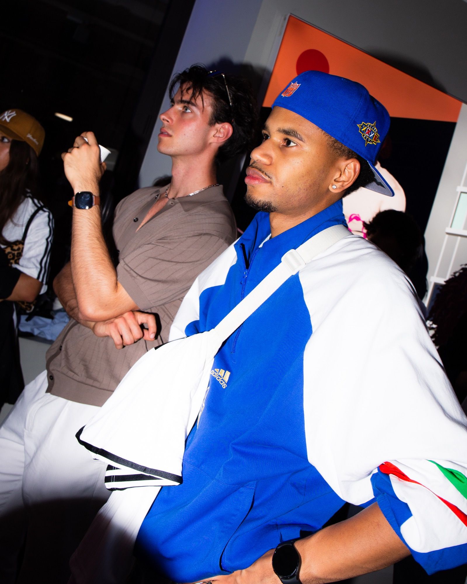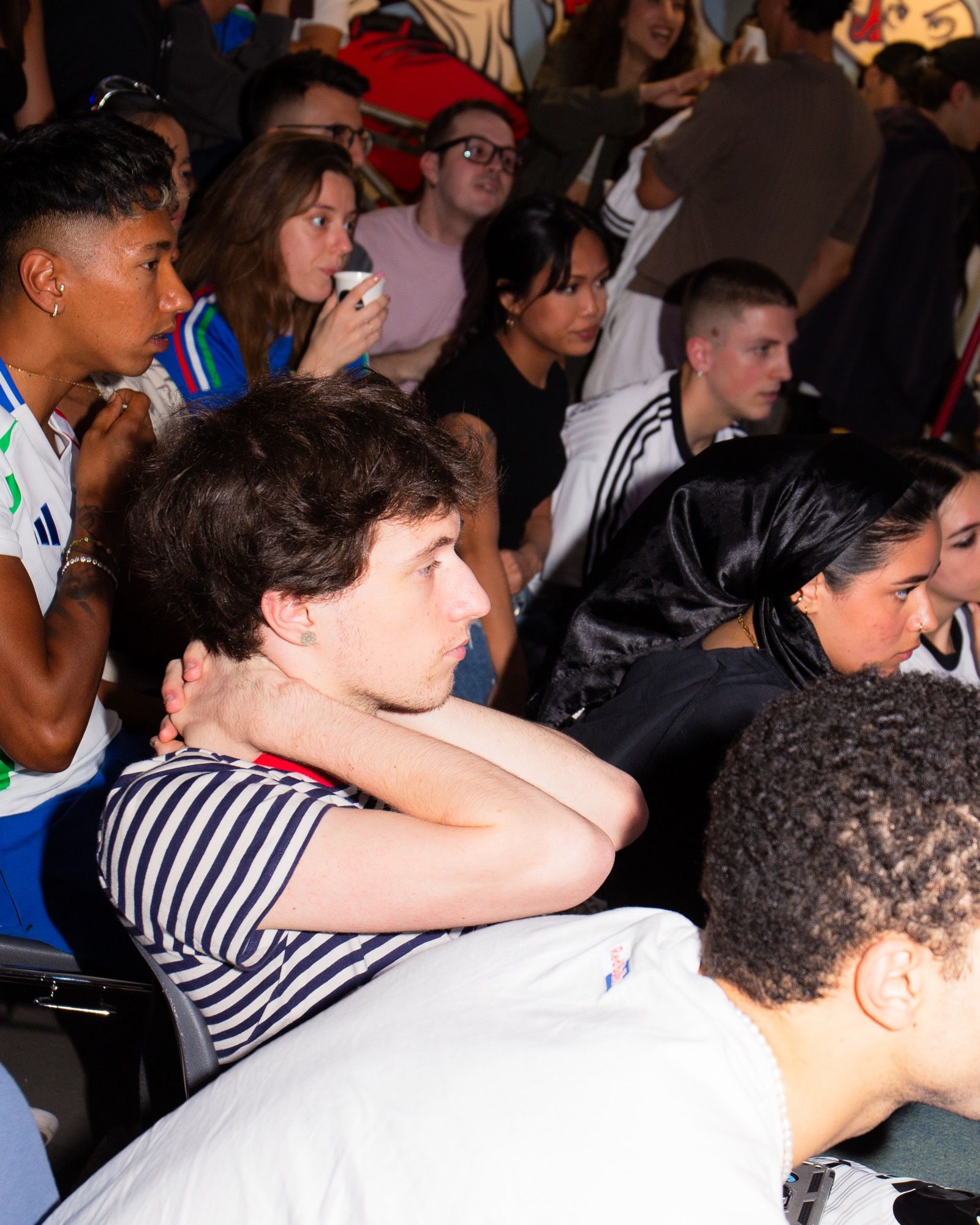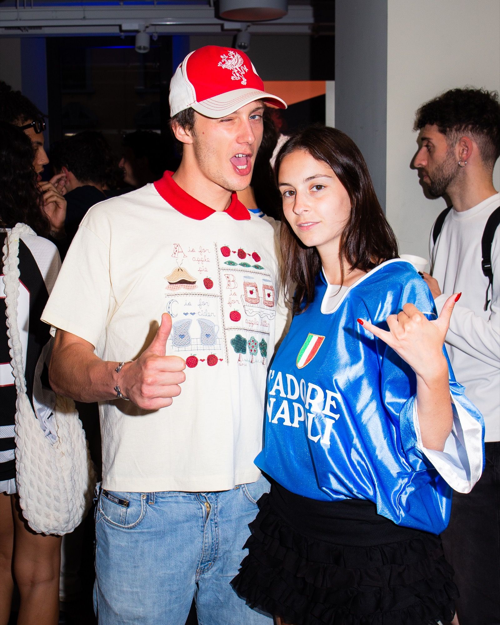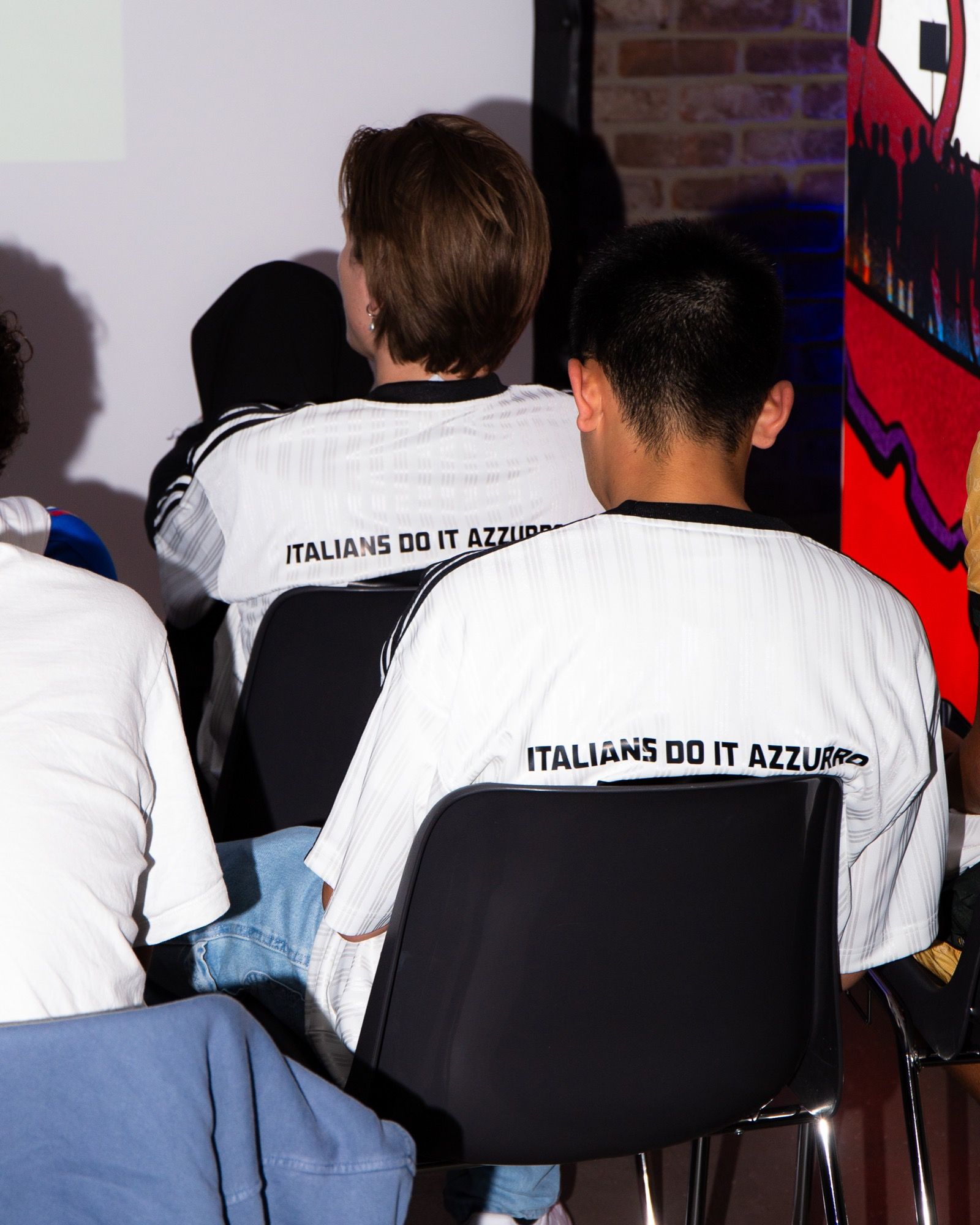 On the eve of Croatia-Italy, tension was palpable. Italy needed at least a draw to qualify second in a group dominated by Spain. It took until the 98th minute to score the decisive goal, thanks to Riccardo Calafiori's assist for Mattia Zaccagni, who tucked the ball into the net with a shot that vaguely reminded many of Alessandro Del Piero's in 2006, during the semifinals against Germany. We experienced it amidst the immersive atmosphere of the event organized by nss sports and Foot Locker at the brand's store (Corso Buenos Aires, 17, corner of San Gregorio) in Milan. The event was a great success, enhanced by a hip-hop DJ set and beers provided by sponsor Bavaria. Additionally, guests were able to personalize the jerseys they received as gifts - blue and white - embellishing them with their preferred number and iconic claims like "Italians do it better." We look forward to supporting the Italian National Team in their upcoming thrilling matches; the more they're considered underdogs, the more they showcase their pride.
