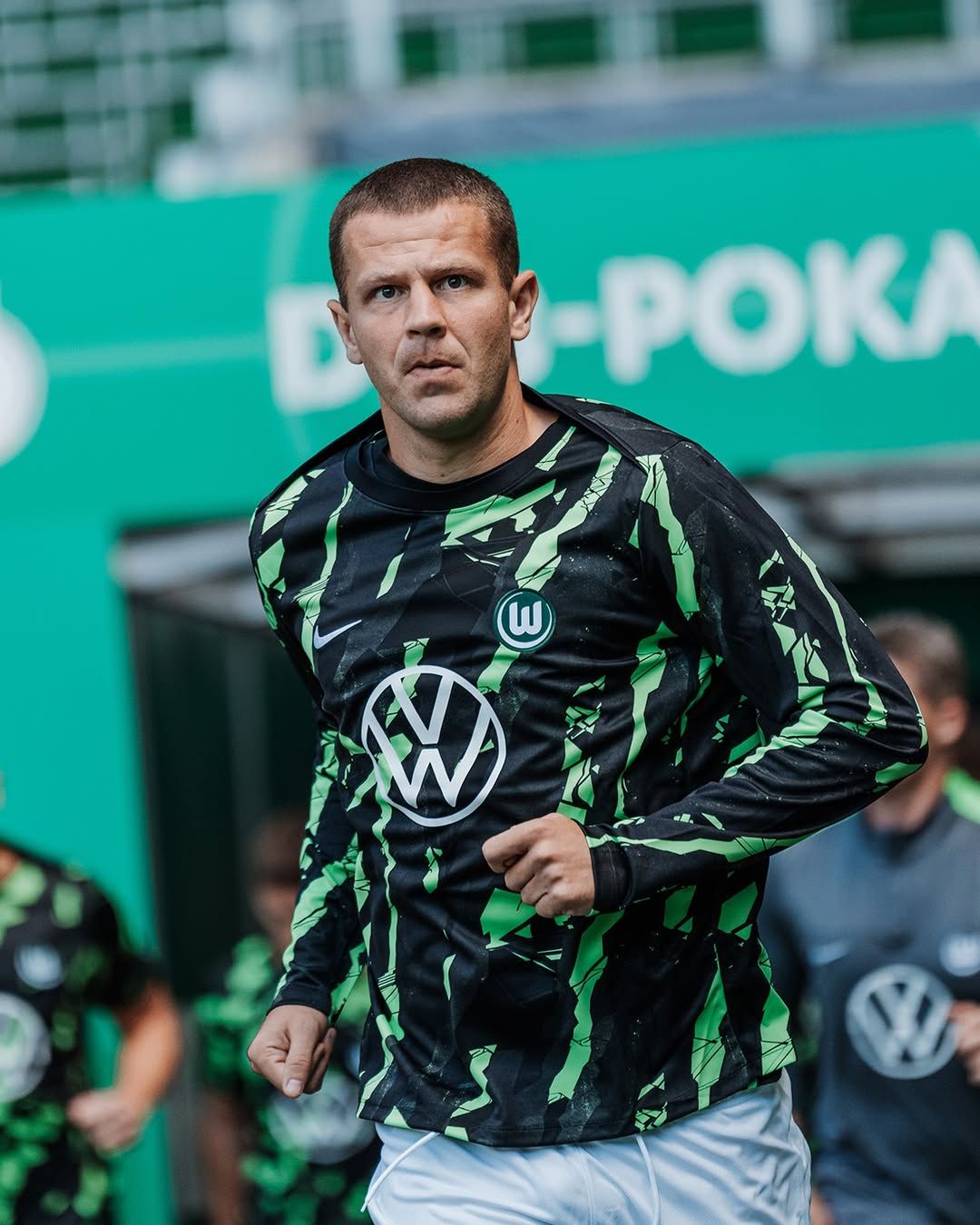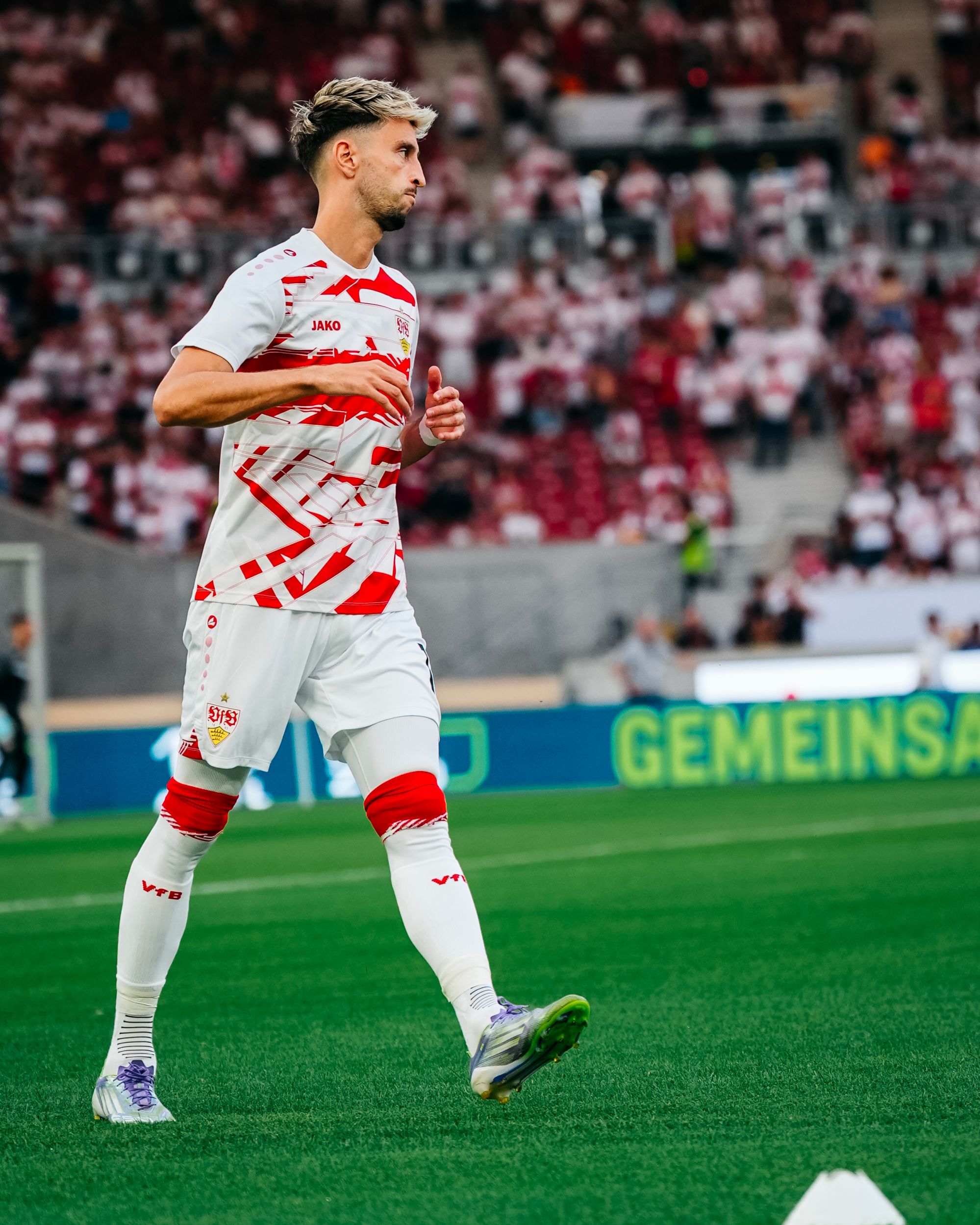 Irregular green inserts alternating with black and grey blocks make up the prematch created by Nike for Wolfsburg, and following the geometric pattern trend, we also find Jako’s shirt for Stuttgart with red and white blocks alternating irregularly across the front.