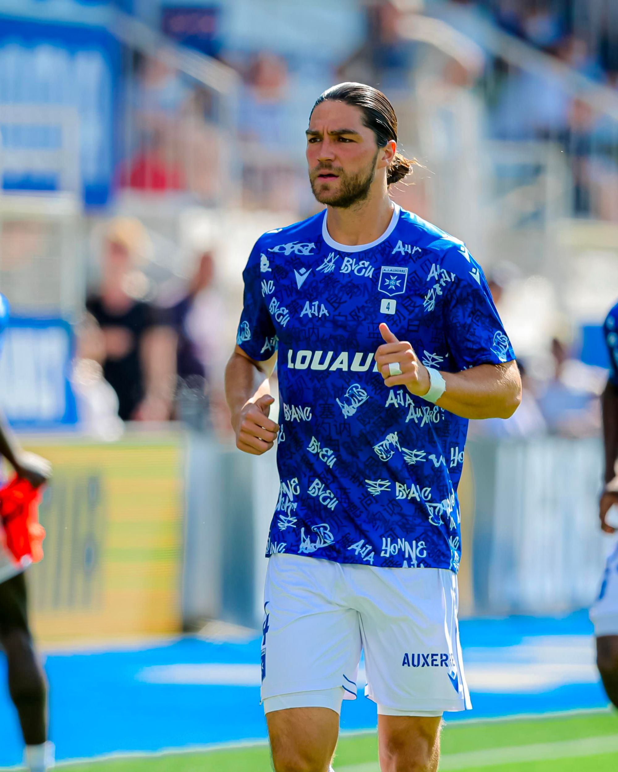 More artistic is adidas’ work for Lyon, with fluorescent red dots further decorating a hypnotic pattern made of soft curves alternating with straight lines. Kappa for Nice created a red-and-black confetti design arranged in a curved scheme. Honorable mentions go to PUMA’s golden shirt for RC Lens and the marker-style lettering decorating the shirt designed by Macron for Auxerre.