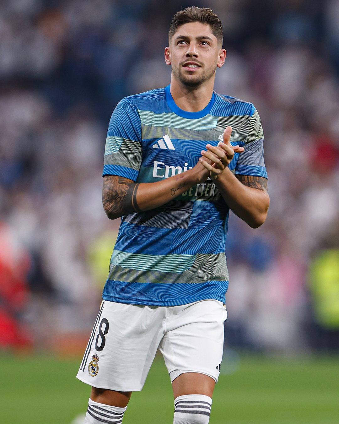 Striped patterns color the prematch shirts of Real Madrid and Barcelona. In the first case, adidas played with optical effects where different shades of blue are decorated with alternating vertical stripes, diagonal stripes, dots, or psychedelic effects. Nike for Barcelona opted for a design with soft, vibrant-colored lines running across the shirt without ever intersecting.