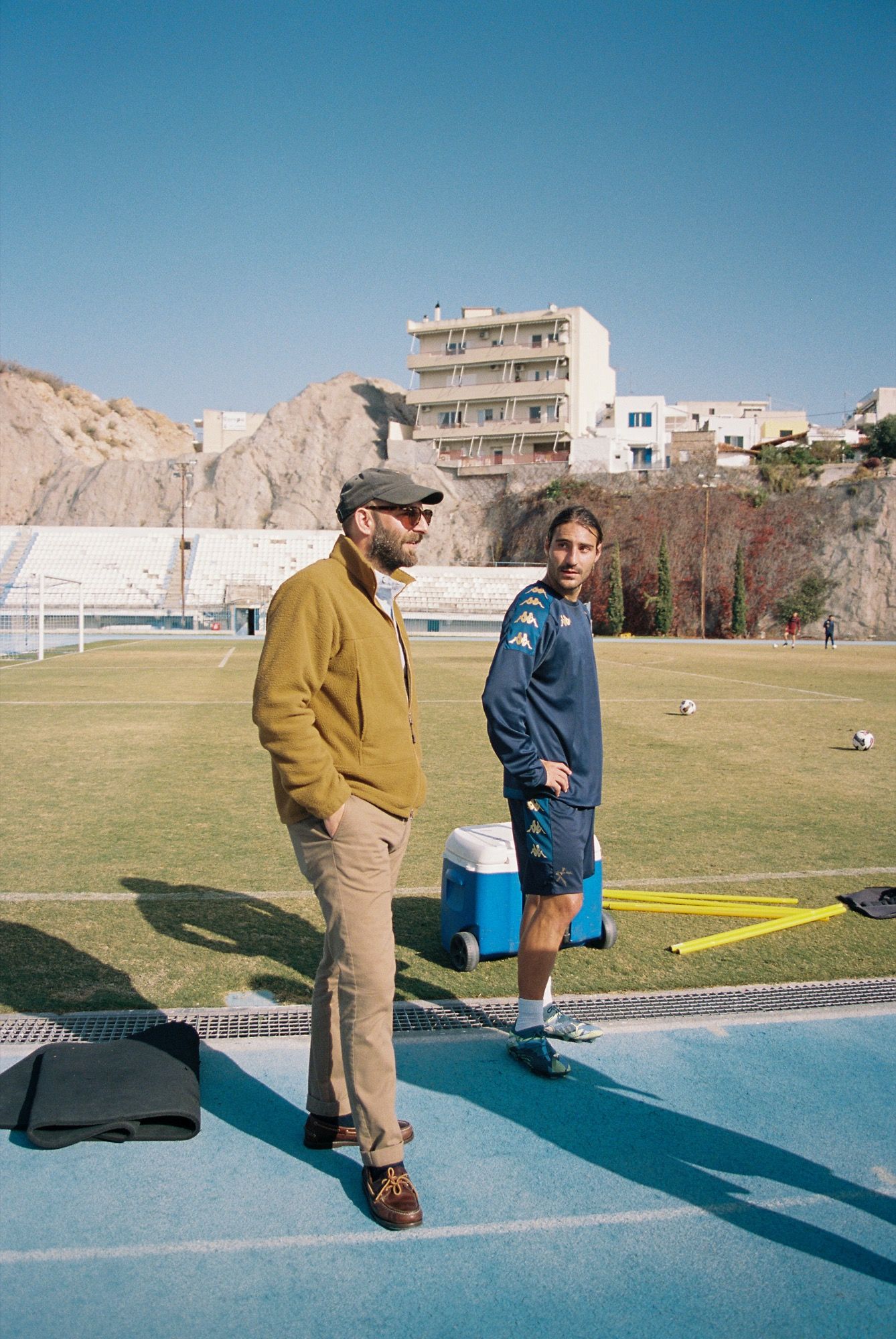 Everybody calls it El Paso, a reference to the classic spaghetti western movie For a Few Dollars More, for the craggy side quarry that encloses the playing ground. We’re at the Grigoris Lamprakis Stadium, the home ground of Athens Kallithea, to meet with Ted Philipakos and Sonya Kondratenko, Branding Creative Director and Marketing Director of the club recently promoted to the Super League. This journey aims to get Ted and Sonya together with David Bellion, creative consultant and former footballer, three like-minded people that never met and who’d love to chat and compare their point of view on football and fashion.