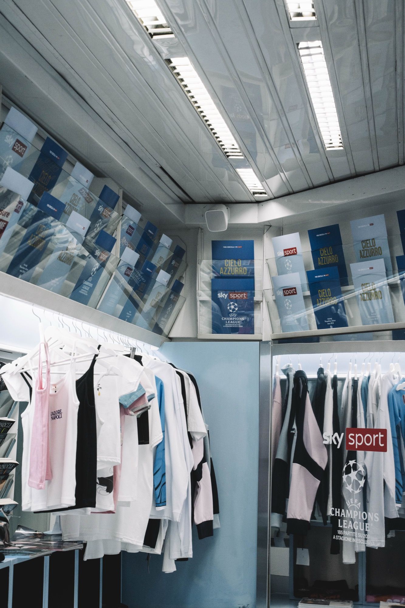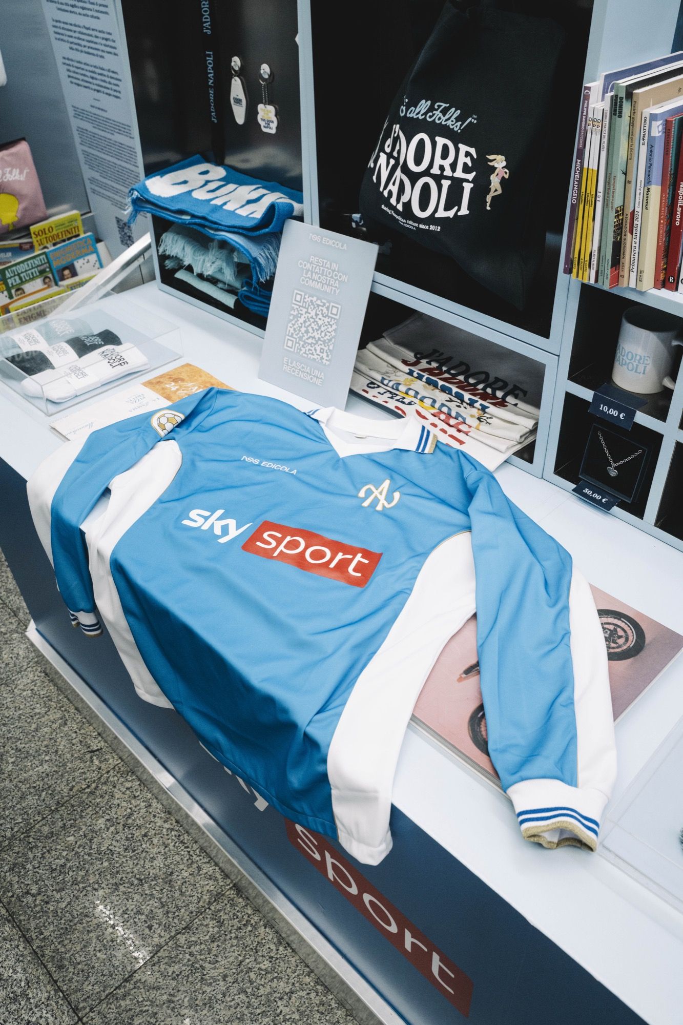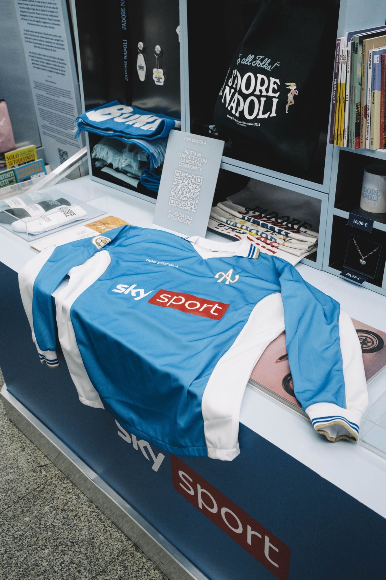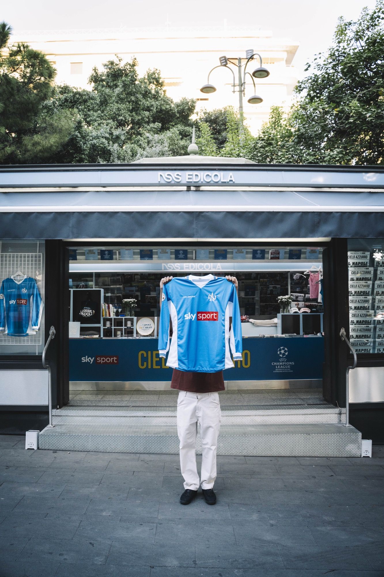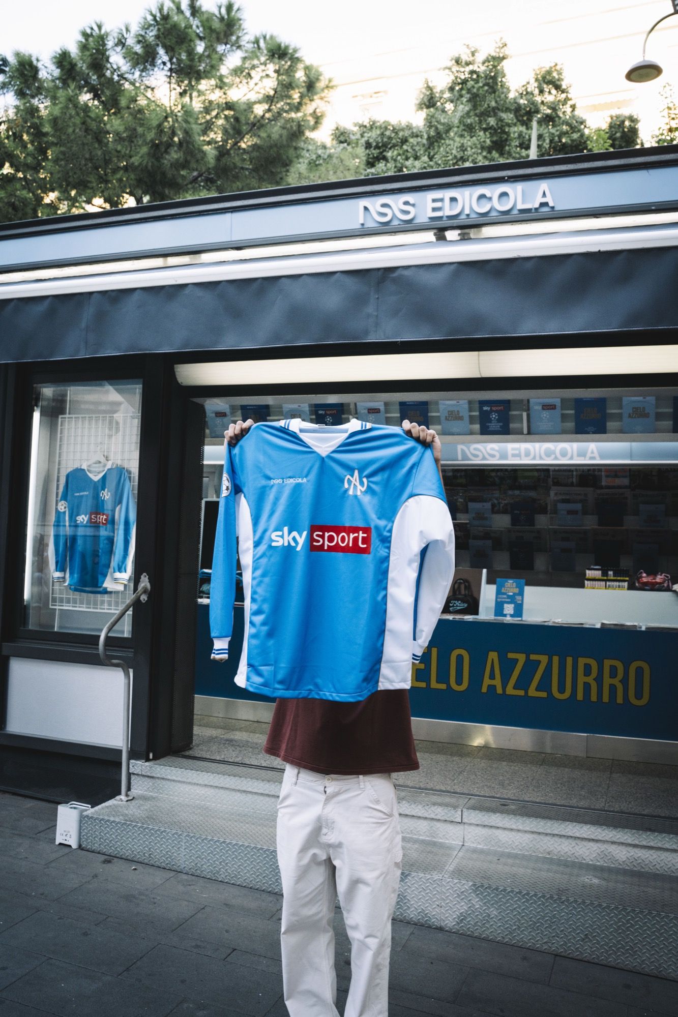 On this occasion, a special football jersey in collaboration with Sky Sport was unveiled, in a longsleeve version, featuring the golden inscription “CIELO AZZURRO” on the back, accompanied by a scarf with the same design elements. At the same time, a football-inspired collection created by nss was also launched, which includes a football shirt with the inscription “CHIATTILLO” and a reinterpretation of the Scottish National Team jersey, in a rip-off version, with the name MCFratm printed on the back, along with many other items.