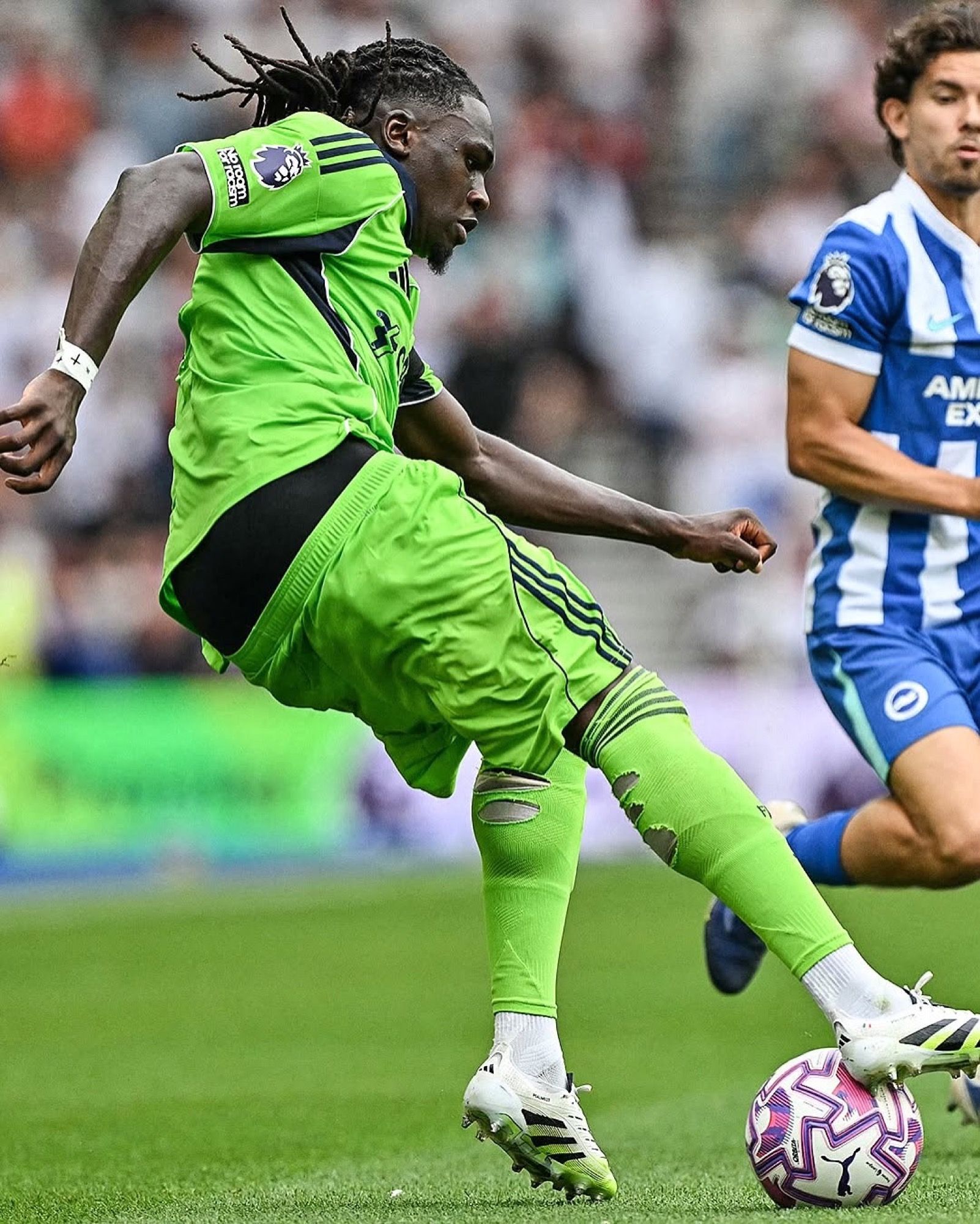 Finally, we come to Edon Zhegrova. In his first appearances with Juventus—against Borussia Dortmund, Hellas Verona, and Atalanta in these opening weeks of the 2025/26 season—the winger wore his shorts really low. Thanks to his technique, his physique, and his athleticism, Zhegrova showed how sagging can distort—amplify or reduce—the perception one has of an athlete and his abilities. A winger with a low center of gravity and exquisite technique, with his sagging shorts and socks pulled all the way up (just like Martín Cáceres!) he seems to move in a completely different way, almost dragging his stride, to the point where the ball, while dribbling, appears to disappear. For Zhegrova, those sagging shorts become like a magician’s cloak, ready to make objects vanish to captivate the audience.