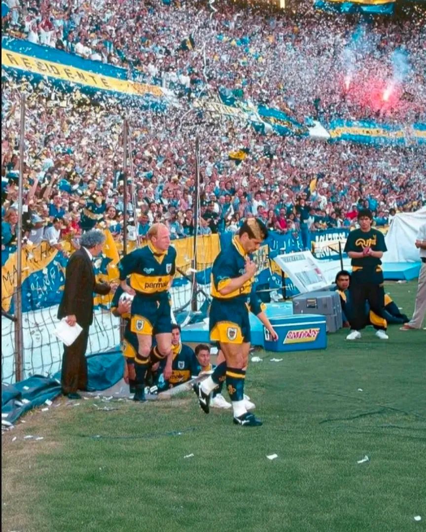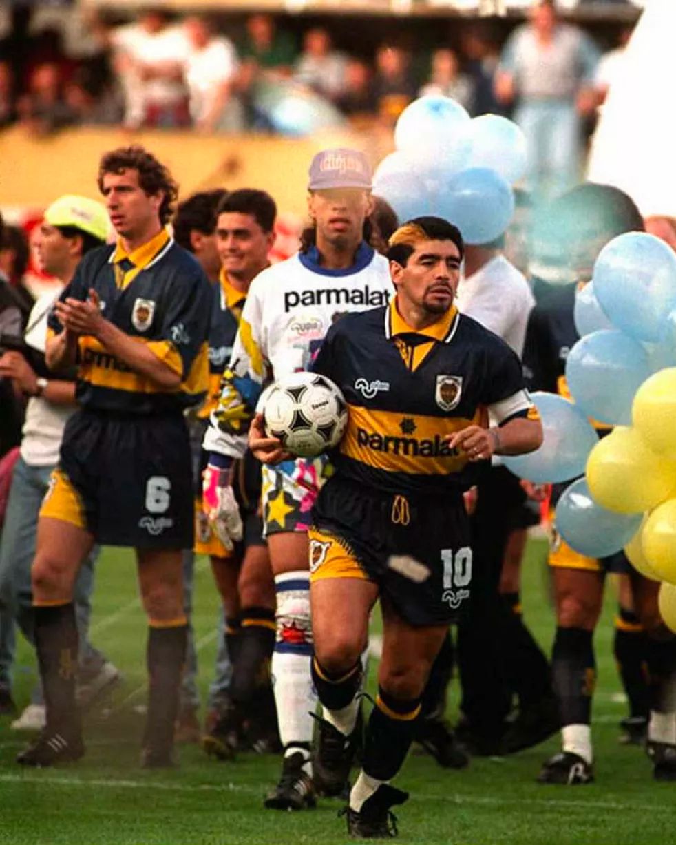 We need to go back to 1995. The last image of Maradona as a footballer dates back to the summer of 1994 during the World Cup, the scream of rage that transforms his face after scoring against Greece, followed by the snapshot of the nurse taking him by the hand to accompany him to the doping test. That test turned out positive for ephedrine, a substance Maradona took during his physical preparation for the event, which helped him lose weight, a total of 15 kilograms. Legend has it that FIFA had assured Maradona he would not be tested, but after the criticisms of the Pibe de Oro to the federation, that agreement fell through and Maradona was forced to undergo the doping test. The positive result cost him 15 months of suspension. He officially returned to the field on October 7, 1995, wearing the Boca Juniors jersey, the team his father supported and for which he played in the 1981/82 season before moving to Barcelona.