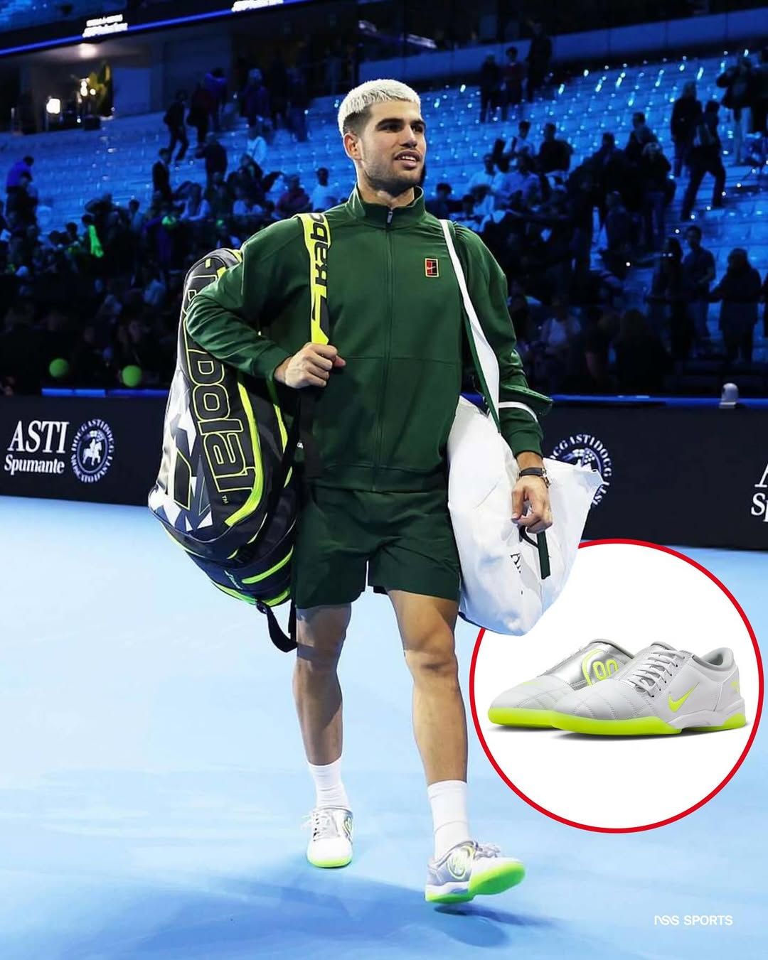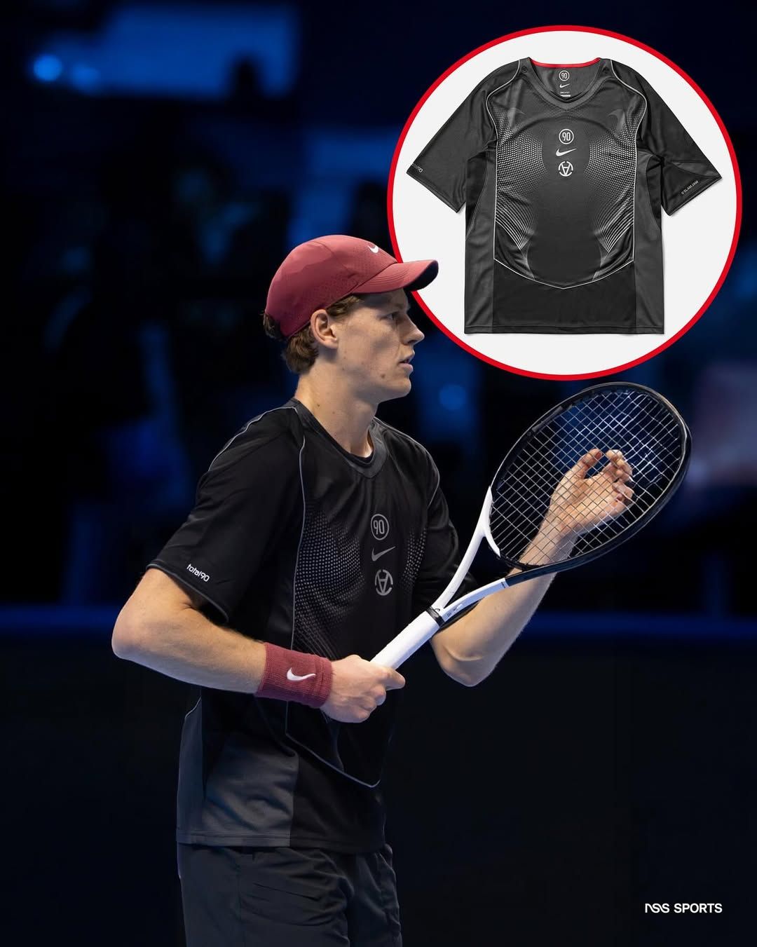 Jannik Sinner opted for a black short-sleeve t-shirt from Nike’s collaboration with Slam Jam. Carlos Alcaraz, meanwhile, wore the latest shoes from the Palace collaboration, also inspired by the Total 90 line and featuring fluorescent yellow details. It’s an imaginary bridge between football and tennis, and a clear example of Nike’s strategy: using the media exposure of world-famous athletes to promote their special collections and connect with streetwear communities and subcultures.