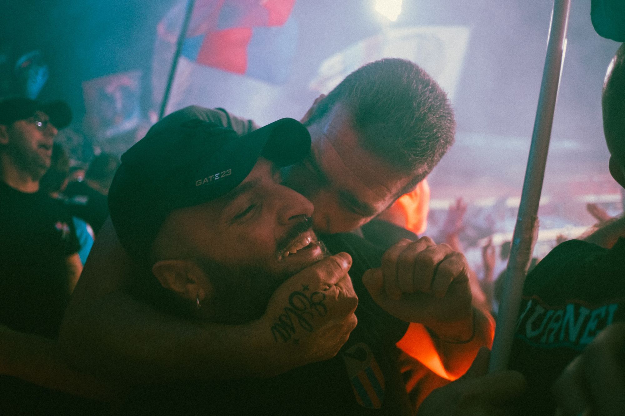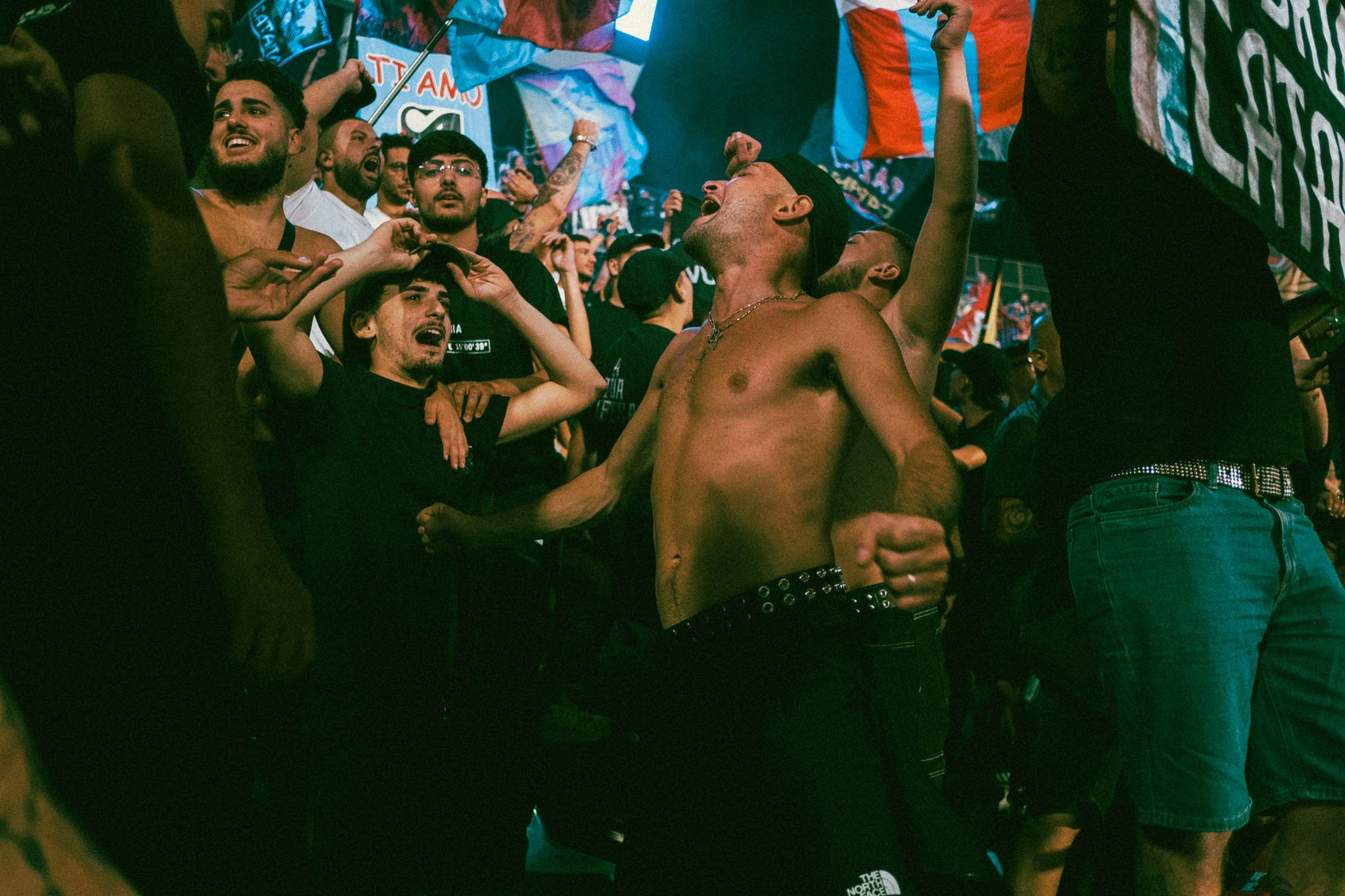 The exhibition brings together three projects that, in different ways, investigate the relationship between photography, the body and the territory. Lower Block is an archive and independent magazine founded by Matt Lidbury based in the United Kingdom, a platform that documents British football culture and its visual rites. Napoli Campioni d’Italia 2023 is the reportage through which Boogie, one of the most important contemporary documentary photographers, tells the city at the moment of its collective explosion — between euphoria, pride and belonging. Finally, Ultras Catania is the series by Emiliano Zingale who, for years, has explored the identity and social dimension of the Etna curve.