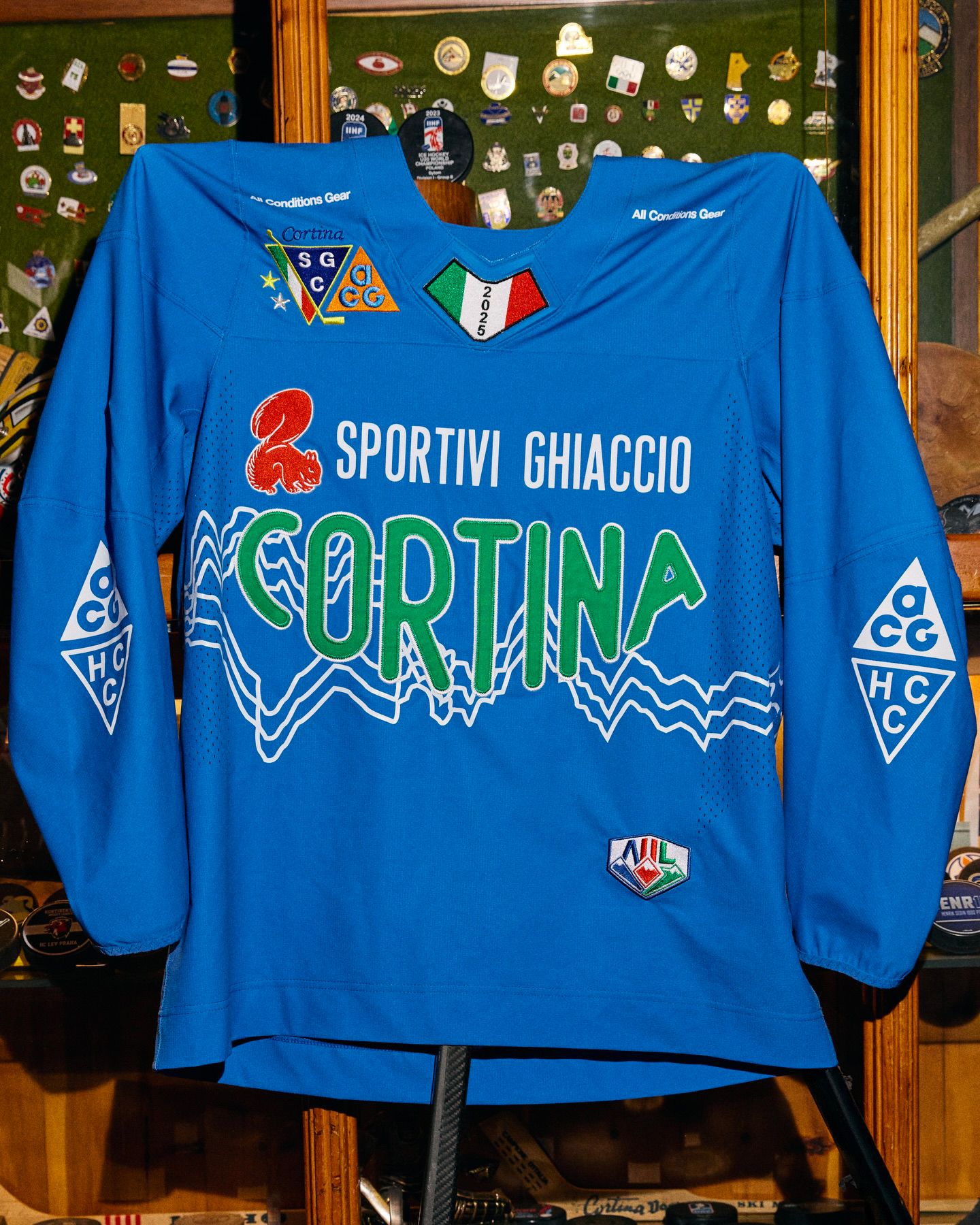 Nike ACG has brought its revolutionary aesthetic into the world of ice hockey as well, creating a special jersey for Hafro Cortina Hockey that made its debut in the match against HC Gherdëina. The brand, long linked to an outdoor imagery that mixes functionality and creativity, reinterpreted the visual identity of the Ampezzo club with an entirely new approach. The jersey is born from the meeting between the team's colors and a series of graphic elements that evoke the mountain landscapes of Cortina, an iconic winter-sports destination and one of the venues for the upcoming Winter Olympic Games.
