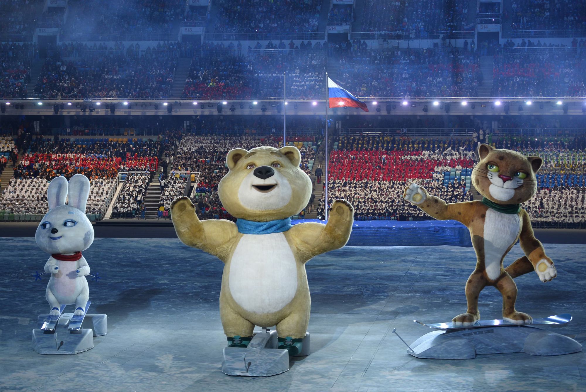 At Vancouver 2010, the mascots were Quatchi and Miga, two mythical animal-like creatures from ancient local legends. Quatchi is a sasquatch living in the forest, endearingly portrayed with blue earmuffs and thick fur. Miga, meanwhile, is a sea bear—a hybrid between an orca and a Kermode bear. Unexpected popularity, however, was claimed by Mukmuk, sidekick to the Paralympic mascot Sumi, a rare native marmot. The mascots of Sochi 2014 were instead left without individual names: a trio consisting of a hare, a polar bear and a leopard. Their selection sparked controversy, as it was widely believed to have been politically influenced, to the detriment of other designs that had garnered greater public support. Alongside the Paralympic symbols—a snowflake and a sunbeam, previously seen in other editions—the trio appeared on the 25-ruble commemorative coin introduced in Russia in 2012.