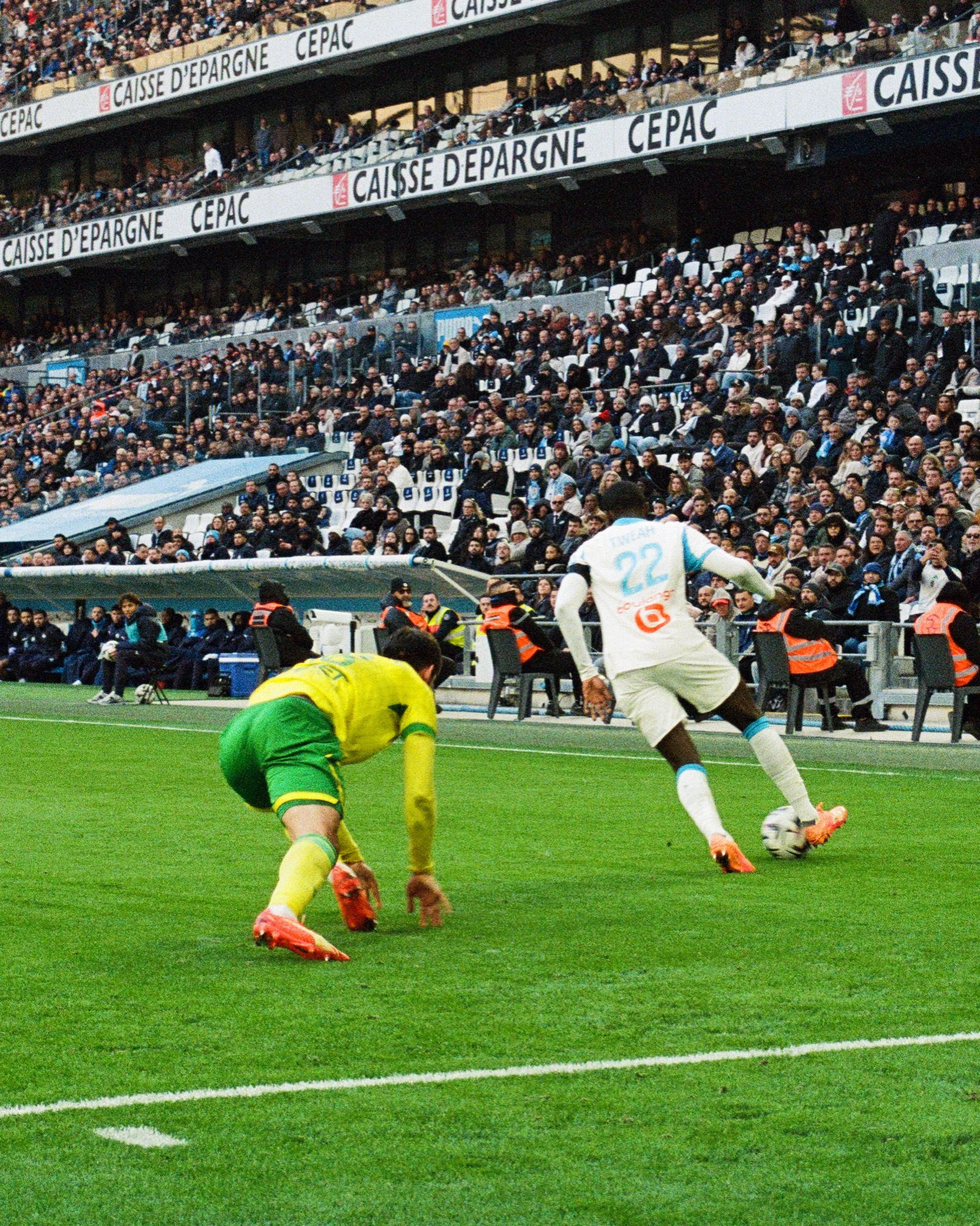 Yet the magic of the stadium and its details—from its virtually unique silhouette on the European scene to the support of the home fans—was from the very beginning our true objective: to capture it through the lens of Axel Doye’s analog camera, the photographer chosen for the occasion and for nss sports’ first, exclusive collaboration with a Ligue 1 club.
