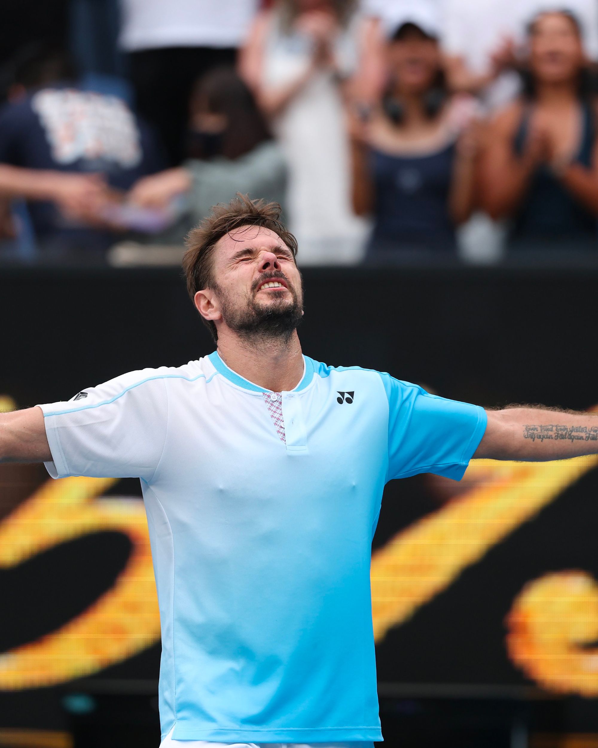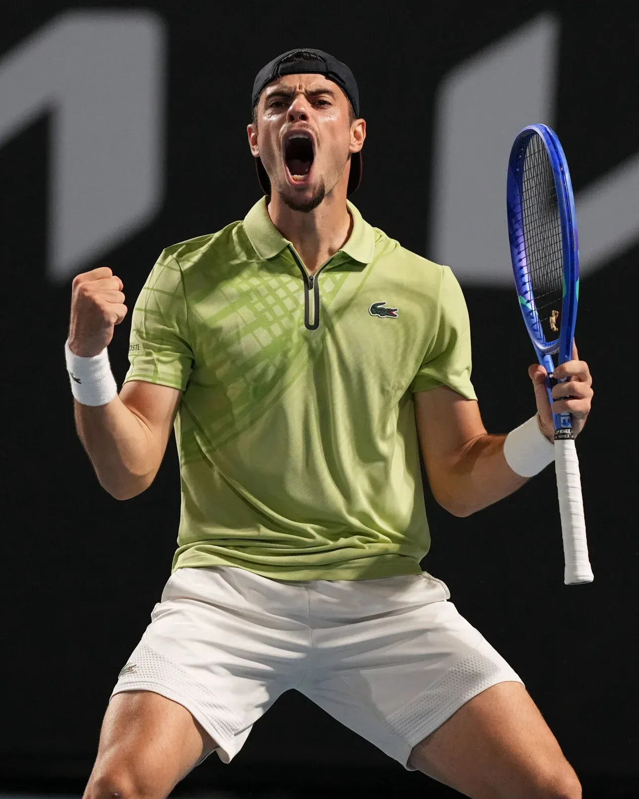 The fluorescent wave doesn’t stop there. Stanislas Wawrinka wore a Yonex kit featuring a gradient that fades from blue into white, starting from the bottom and moving upwards — a concept echoed by lululemon in Francis Tiafoe’s look. Priscilla Hon brought THE UPSIDE’s latest collection onto the court, centred around a monochrome yellow bodysuit. Even Lacoste joined in, unveiling more colourful options: a polo with a faded geometric pattern and another featuring a bold all-over geometric motif. A variation on the theme came from Mattia Bellucci, who wore a C.P. Company kit with soft silhouettes and muted tones, evoking a distinctly ’90s aesthetic. The only player to steer clear of the trend was Venus Williams, who — on the day she became the oldest player to compete in singles at the Australian Open — wore a dark blue, monochrome Lacoste kit. The exception that proves the rule.
