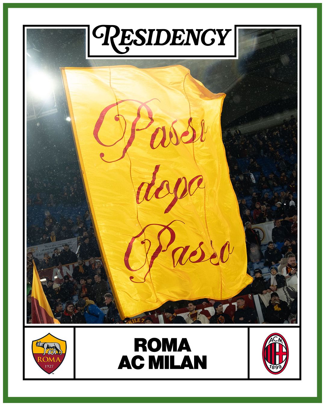 For the new episode of Residency, the photography column by nss sports in collaboration with Lega Serie A, we've been to the Stadio Olimpico for Roma vs Milan. Under relentless rain, among chants, tension, and adrenaline, the lens of Ilaria De Benedetto captured not only an extraordinary match, but the soul of a night lived with pure passion.