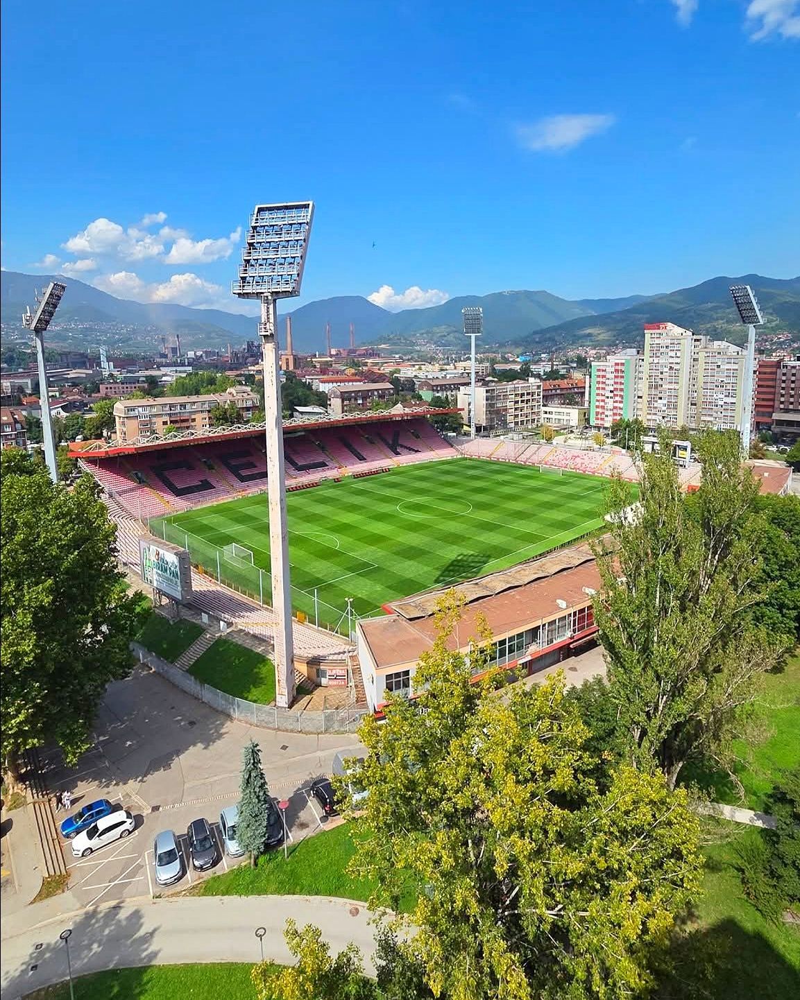 At its opening, Bilino Polje could host double the spectators of the previous stadium, making it a rare example in Bosnia: an English-style ground with a rectangular shape and stands close to the pitch, very different from Sarajevo’s stadium, which still has an oval layout. Even today, despite Čelik playing in the Bosnian second division and having lost its former glory, the club still boasts the second-largest fanbase in the country, with an average of over 5,000 spectators, creating a fiery atmosphere around the pitch.