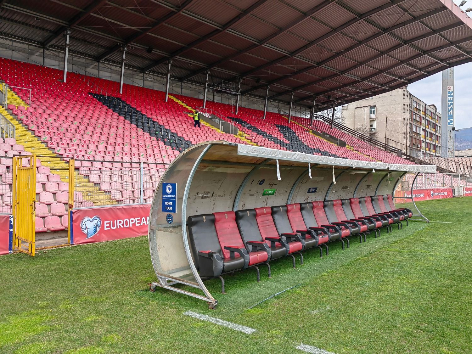 The Zenica stadium is now considered a fortress which, after several structural interventions (the most recent major one in 2012) and the introduction of seating, currently has a capacity of around 14,000 seats, with two covered stands. The main stand is the largest, while the other three sections are built on the same level, forming a continuous arrangement of seats and spaces. The grass pitch features heating cables beneath the surface, and floodlights stand at the four corners of the stadium. The tunnel leading from the locker rooms to the pitch is undoubtedly one of its most distinctive features, entirely covered with graffiti by Čelik fans, somewhat reminiscent of Belgrade’s Marakana. Near the stadium, alongside the Bosnia River, stands the national team’s training center, the equivalent of Italy’s Coverciano. Meanwhile, last December, a further renovation project was approved, including full roof coverage of all sections and numerous upgrades.
