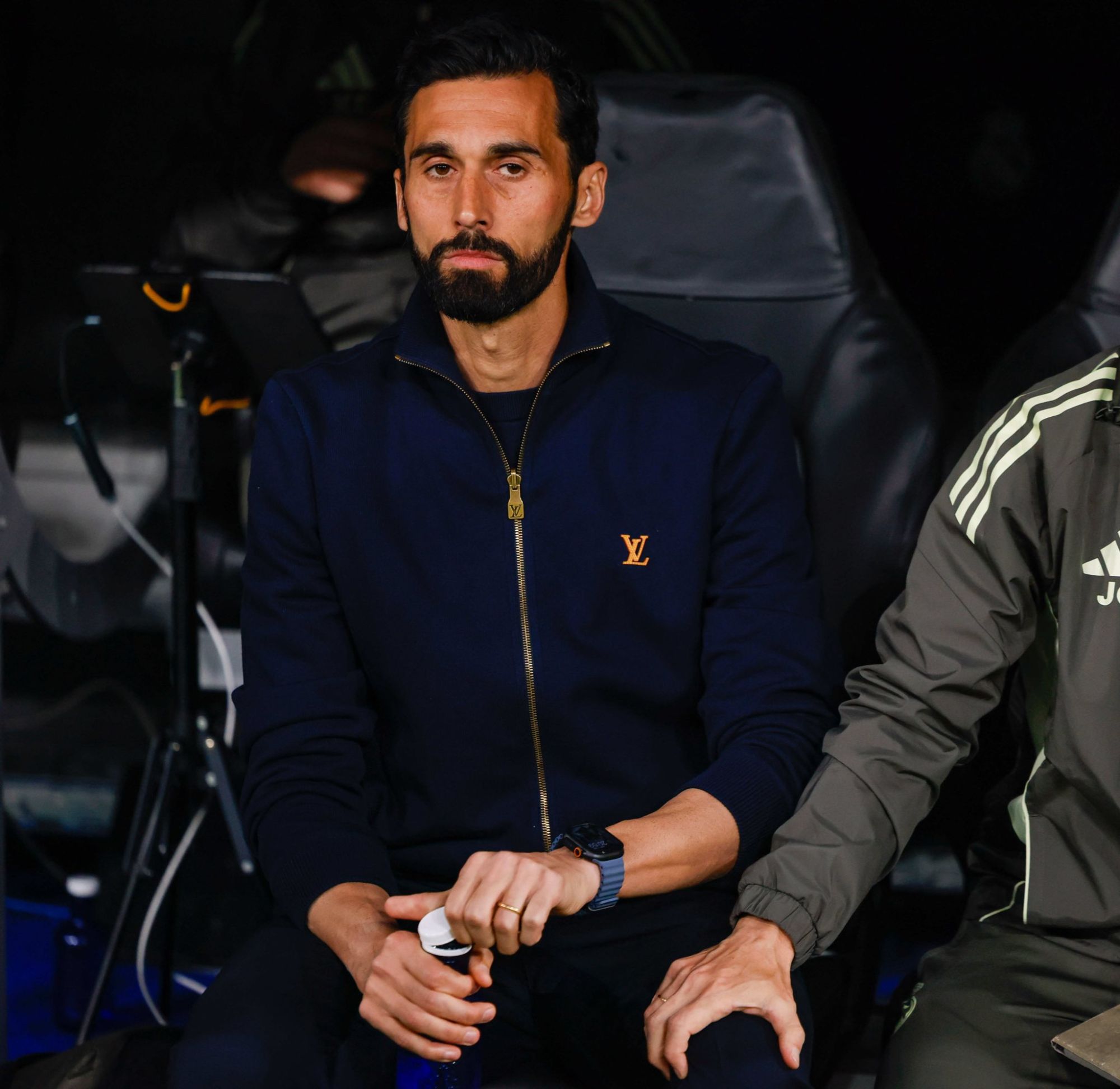Álvaro Arbeloa will go down in history as the first manager to wear a Louis Vuitton jacket during a Champions League match. It had already happened in La Liga during the derby against Atlético Madrid, when he sported a navy blue suede jacket with an embossed Monogram pattern. The version seen in the quarter-final first leg was even more understated: a classic zip-up hoodie, yet still elegant thanks to the embroidered logo.