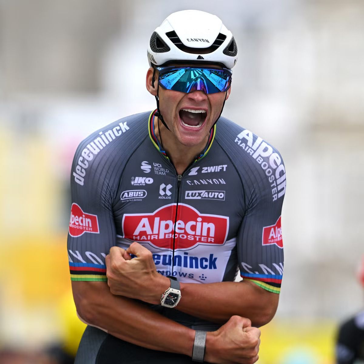 There is no definitive way to trace the exact origins of visors. The most widely accepted version dates their emergence back to 1985, thanks to the liaison between Greg LeMond and Oakley, creating a technical tool that set a new paradigm by replacing aviator-style sunglasses that had dominated the cycling scene up until that moment. From then on, visors became a must-have that gradually extended their influence to other sports.