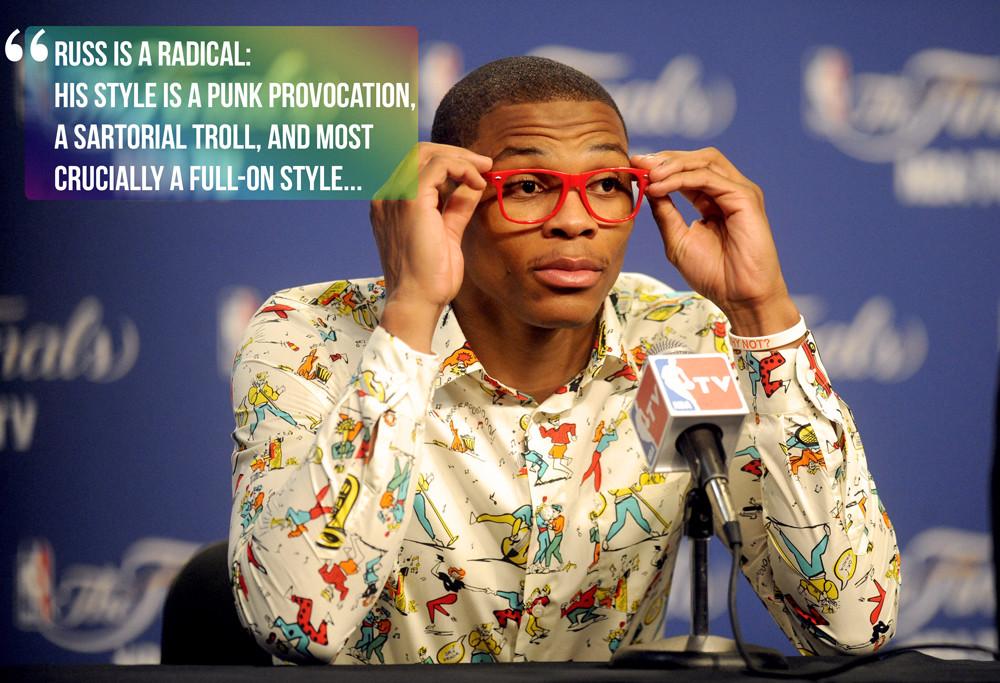 Without a doubt we include Kevin Durant and Russell Westbrook as two of the most fervent supporters of this new fashion. Durant shock the American street-wear when at a press conference after the match coming in checked shirt closed until the last available button and black backpack. Rus instead is now famous for its look "extreme" and especially to wear colorful spectacle frames without lenses, since the sight of the boy probably exceeds even the 10/10.