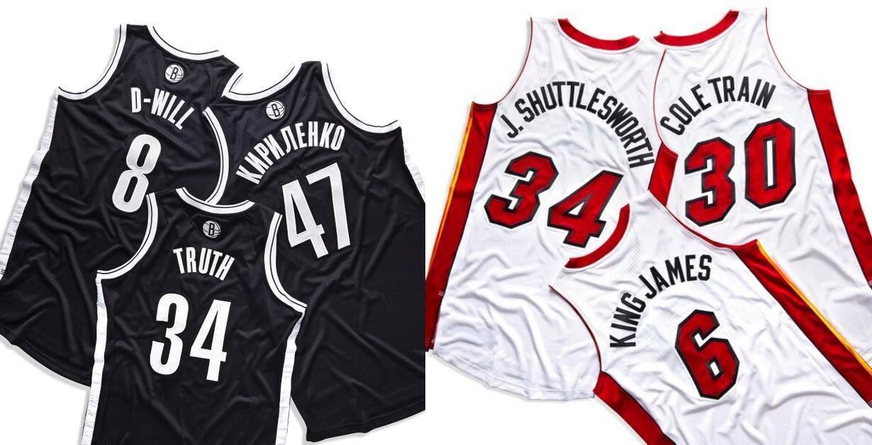 Despite the many criticisms that the idea had received, last night the Miami Heat and the Brooklyn Nets took to the field with the jersey with printed on their nickname. From the legendary "J. Shuttlesworth "to the improbable "Doc" Joel Anthony through the " The Truth "Pierce to the strange "Кириленко" of Russian Kirilenko .