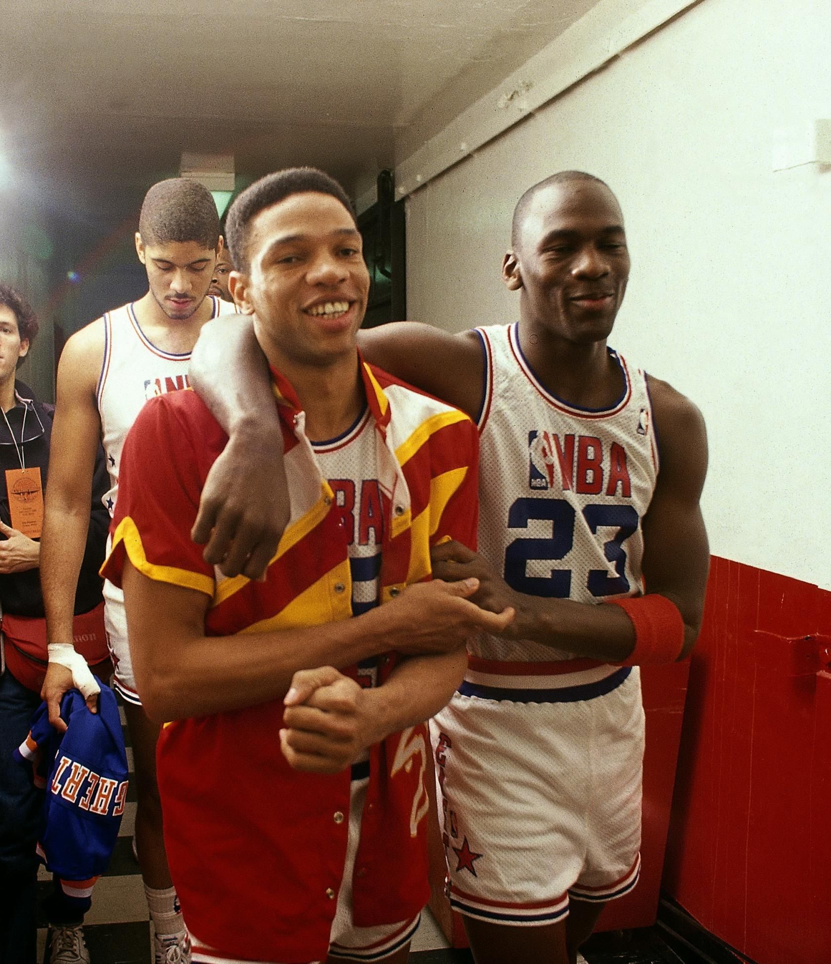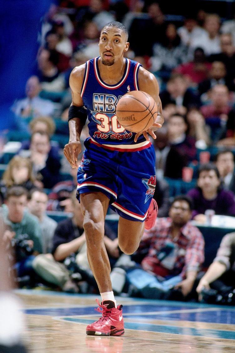 In the year that Jordan goes to play baseball , his teammates (particularly Pippen and Olawujon ) wea,for us , the most beautiful jersey of the All Star Game. A star from the background to the issue, which sublimated perfectly the meaning of the game.