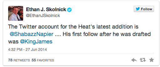 Indeed, Shabazz Napier took it very badly. The first choice of the Miami Heat last draft had arrived as a favorite of Lebron, who had in fact twettated, after being the first to follow him on Twitter, so ...