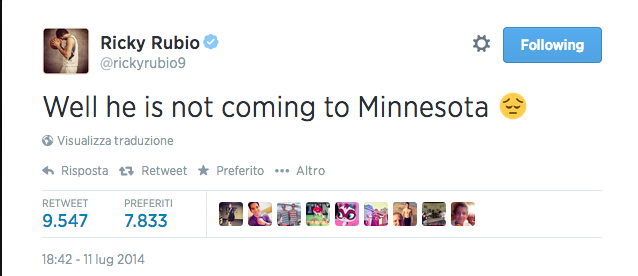 I do not know who had made upin the mind of Ricky Rubio, Timberwolves star, that Lebron could only consider the idea of moving to Minnesota. The fact is that the young Spanish had we put thought, and was very disappointed.