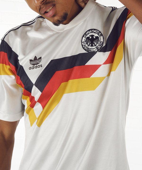 "Often regarded as greatest football shirt ever designed, the 1990-92 West Germany home shirt was a winner in more ways than one. Made by adidas, and worn by great players like Jurgen Klinsmann, Rudi Voller, Andreas Brehme and captain fantastic Lothar Matthaus to name just a few. Stylish and bold in design it stood out at Italia 1990 World Cup, as did the team who beat England in the Semi-Finals before an Andras Brehme penalty in the final saw off Maradona's Argentina to be crowned World Champions".