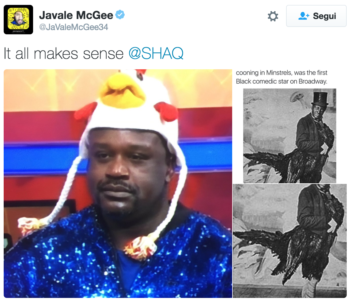 Shaq hasn’t resisted the temptation to tease Golden State’s center, writing among the hashtags this like “Gave you 3 chances” and “Trying to give you a pass [to stay out of Shaqtin’ a Fool]", mocking another time McGee. Whom, by his side, wanted to respond with an inappropriate picture. He posted a photo of Shaq’s with a chicken cap beside Bert Williams’ picture, a famous black actor from the early nineties.