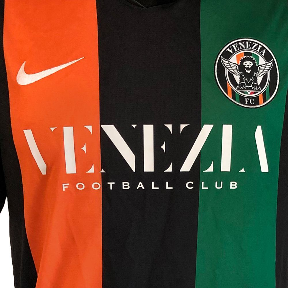 Sul petto, ed è un'assoluta novità rispetto al kit dello scorso anno, compare la scritta Venezia FC reduce da un moderno restyling, creato appositamente dai designer Nike per rendere ancora più accattivante e al passo coi tempi la maglia.
