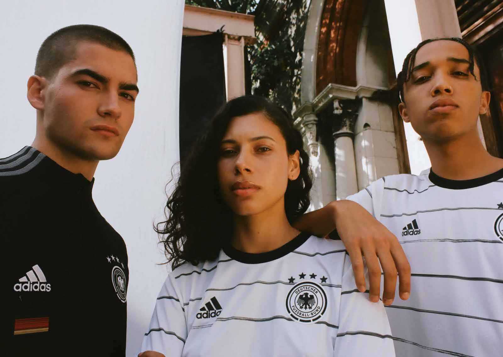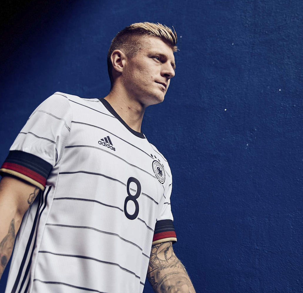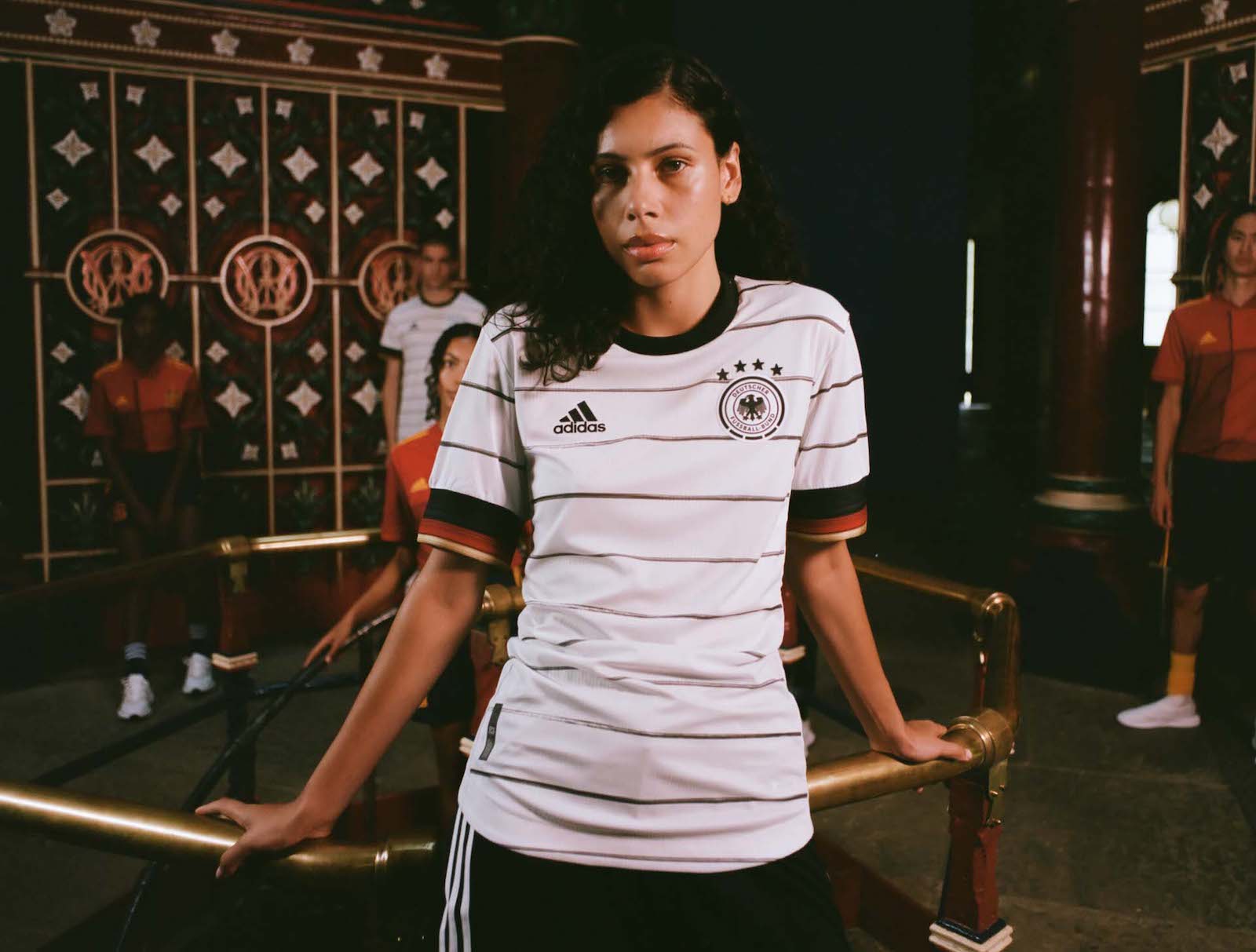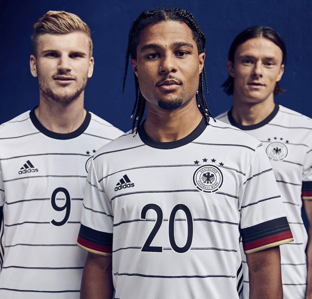 Dopo aver presentato 'Uniforia', il pallone ufficiale di Euro 2020, adidas ha deciso di sfruttare l'International Break di novembre per svelare tutti i kit delle proprie squadre in vista dei prossimi campionati europei di calcio. Tra questi c'è ovviamente il nuovo Home kit dell Germania, essenziale ma con alcuni dettagli non frequenti per il marchio tedesco. Il tradizionale fondo bianco è alternato a un sottile gessato orizzontale, realizzato con linee grafiche che simulano una pennellata, dando un tocco street all'intero design. La bandiera tedesca è inserita nei bordi delle maniche, insieme a una texture a linee di diverso spessore che simboleggiano i valori di inclusività della squadra vice-campione in carica.
