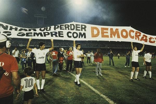 Se si escludono le maglie nazionali legate ai regimi (come quelle dell’Italia ai Mondiali 1934 e 1938, con il fascio littorio sul petto), una delle prime maglie a fare da ponte tra il campo e la politica è stata quella del Corinthians utilizzata nella stagione 1982-1983. All’epoca il Brasile era sotto la dittatura militare del generale Figueiredo, e Socrates - capitano della nazionale e simbolo del club paulista – decise di farsi portavoce del desiderio di democrazia del popolo brasiliano in quel periodo, compattando i suoi compagni di squadra in una vera forza di resistenza, chiamata Democracia Corinthiana. Il kit ’82-83 presentava infatti il logo del movimento ideologico creato da Socrates sulle spalle, trasformando la divisa una sorta di manifesto politico.