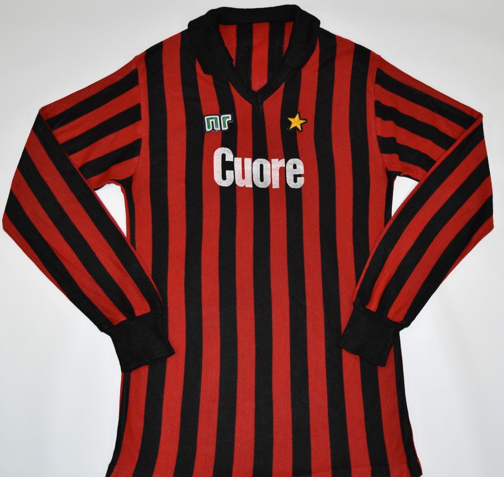 Oltre a PUMA, adidas e Lotto, il Milan pre Berlusconi ha vestito anche Kappa e ennerre, il brand italiano che spopolava, anche all'estero, nel corso degli anni '80. La bellezza di questa maglia, indossata da gente come Blissett e Baresi, sta senz'altro nella sua semplicità che ne esalta i colori.