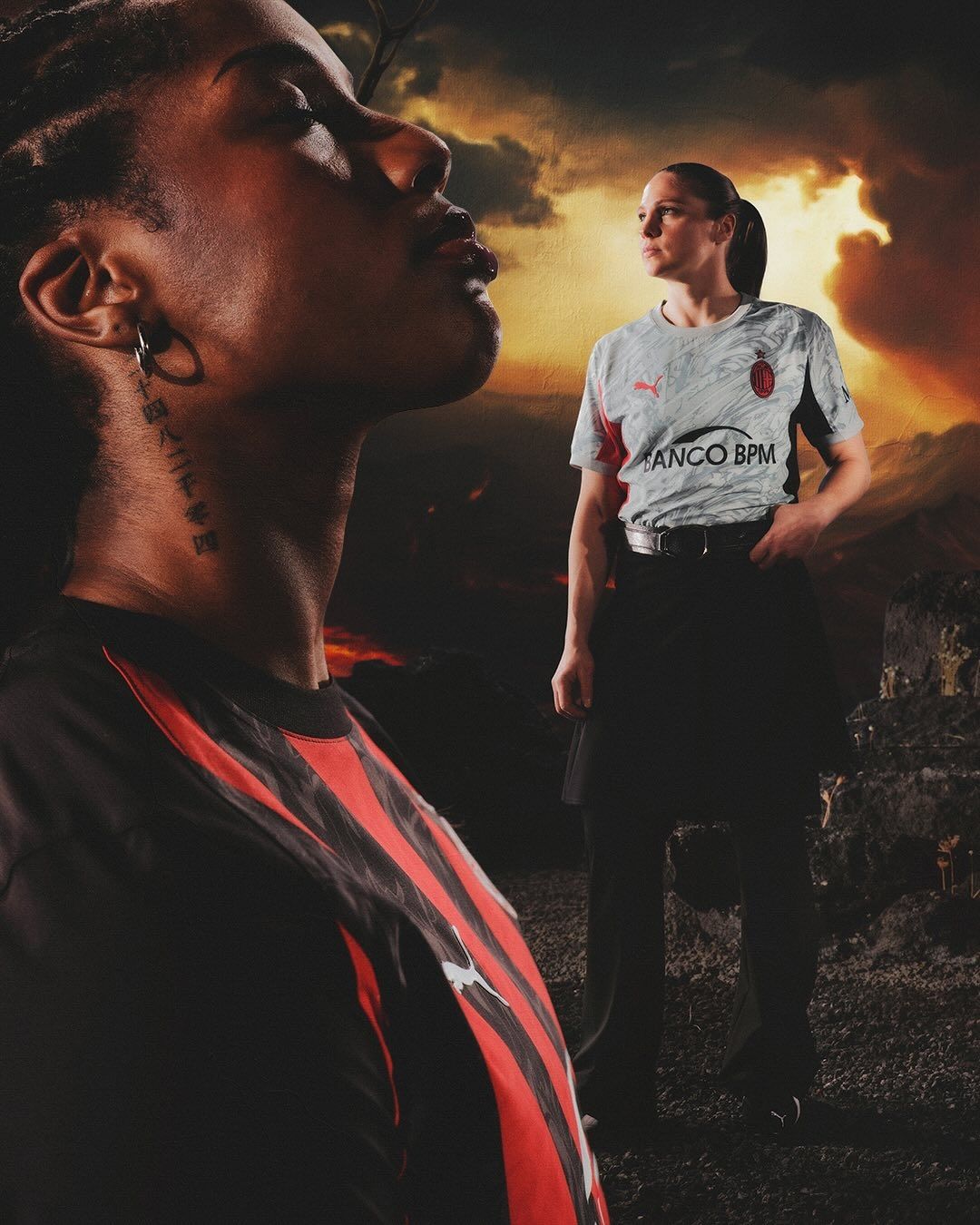 È stata presenta la nuova Home jersey del Milan per la stagione 2025/26. Una maglia disegnata da PUMA in cui le tradizionali barre verticali rossonere corrono secondo un pattern geometrico regolare e sono arricchite da fiamme che le attraversano. Un omaggio al fondatore Herbert Kilpin e al motto del club: "I nostri colori saranno il rosso come il fuoco e il nero come la paura che incuteremo agli avversari". Le maniche saranno rosse nella parte interna mentre nella parte esterna saranno nere. La stessa tonalità è stata utilizzata anche per la parte posteriore della maglia dove verranno applicati numero e nomi oltre che per il colletto, realizzato tramite un elegante girocollo. Completano la maglia i dettagli in bianco ma soprattutto lo stemma del club in versione monocromatica con rifiniture bianche su fondo rosso sostituendo i colori sociali.