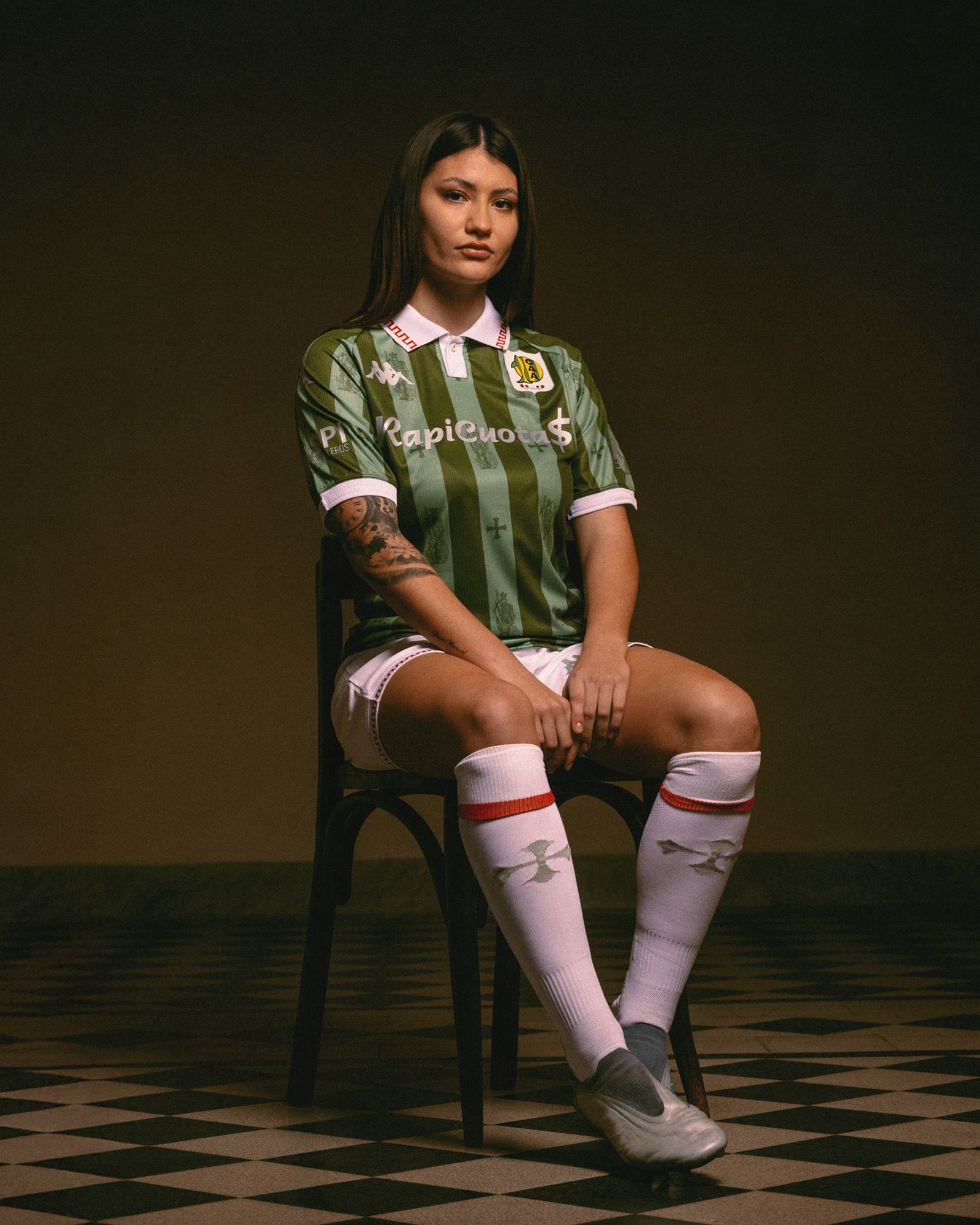 Quel pomeriggio, nell’aria c’era qualcosa di più del calcio. Qualcosa di invisibile, eppure profondamente percepito. Oggi, quel ricordo vive nella nuova maglia che Aldosivi e Kappa Argentina hanno presentato come tributo a San Giorgio e a una storia intrisa di cultura, comunità e passione—coronata dalla promozione in Primera División. La maglia si distingue per la sua unicità nel panorama europeo delle divise calcistiche e, in particolare, rispetto a quelle realizzate da Kappa per la nuova stagione, grazie all’iconografia sacra—come la Croce di San Giorgio, la stessa presente sulla maglia away del Genoa per la stagione 2025/26, club storicamente legato all’Argentina—applicata sulle strisce verticali verdi, in contrasto con il colletto bianco attraversato da un elegante dettaglio verde.