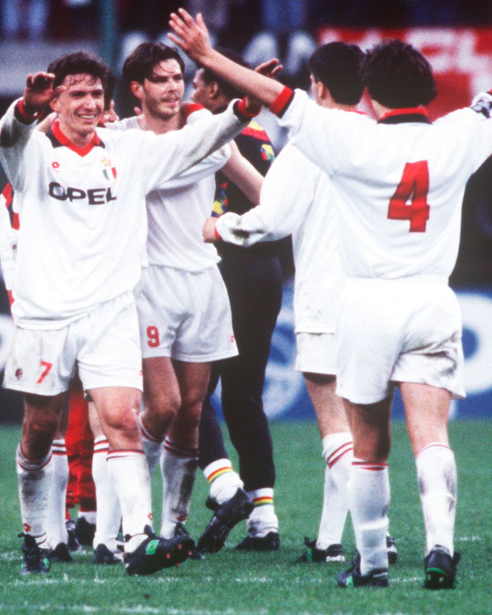 Il Galatasaray fu una delle prime squadre ad utilizzare una special jersey dedicata alla Champions League quando Umbro, nella stagione 1993/94, realizzò una maglia in tinta unita gialla da vestire nelle notti europee al posto della maglia bicolore giallorossa che la squadra di Istanbul era solita utilizzare in campionato. Quella stessa maglia venne utilizzata anche nel corso della stagione 1994/95, stagione in cui anche il Milan decise di introdurre una maglia speciale per la Champions League: una divisa in tinta unita bianca utilizzata in tutte le partite disputate dai quarti di finale sino alla finale di Atene contro l’Ajax che andava a sostituire sia la classica maglia rossonera che la maglia Away di quella stagione, sempre bianca ma caratterizzata da una barra rossa con rifiniture nere nella parte superiore utilizzata nel corso della fase a gironi e per tutta la stagione in campionato.