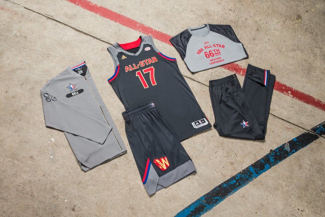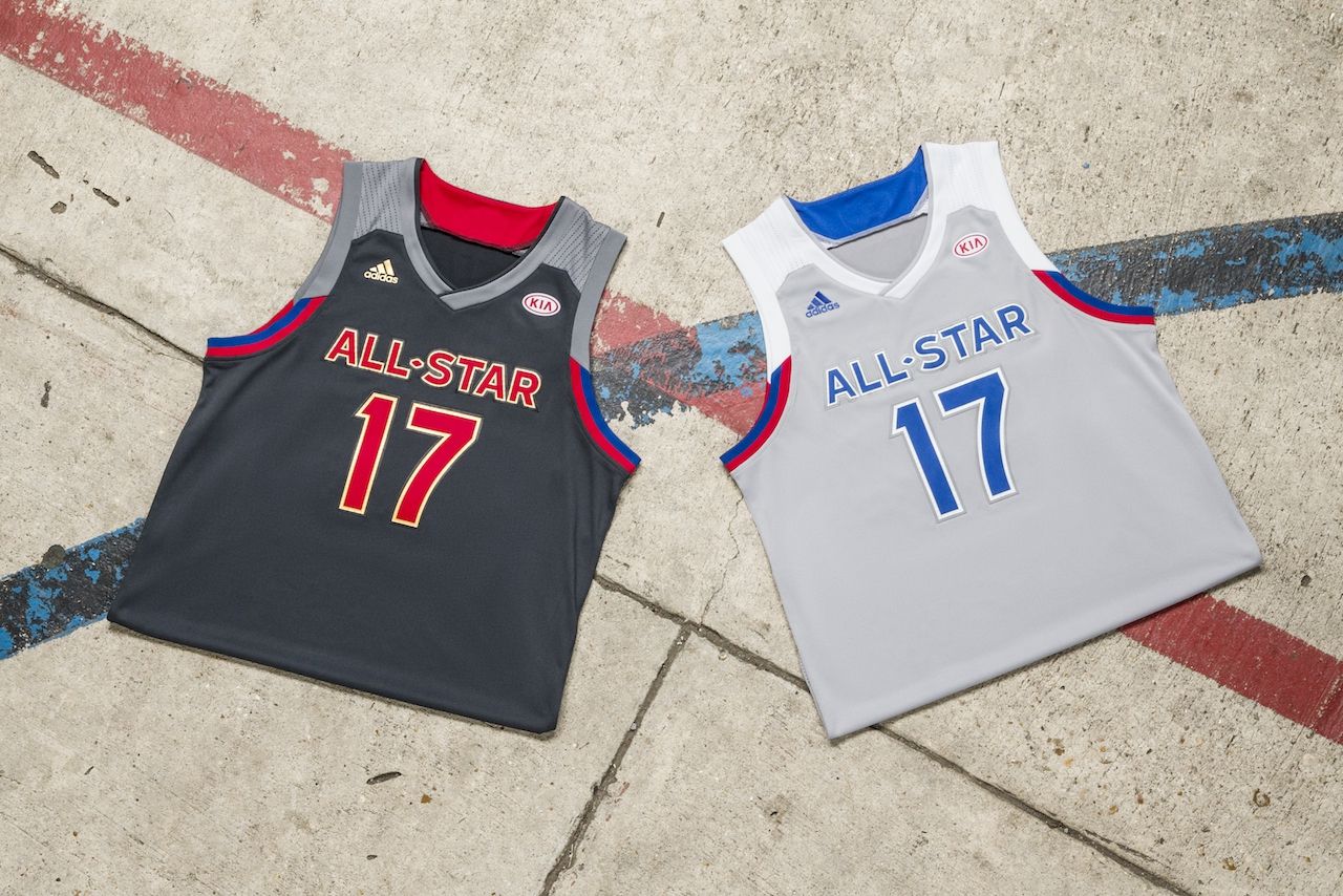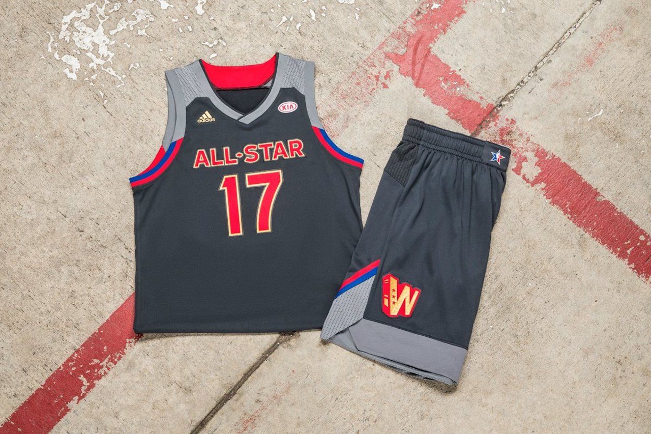 Per la partita di domenica, la prima senza Kobe Bryant dopo il suo ritiro, adidas ha scelto diverse tonalità di grigio per le divise di Est e Ovest, con inserti bianchi, rossi e blu per LeBron James e compagni, mentre Curry e soci avranno sempre il rosso e il blu, ma con due differenti gradazioni di grigio. I calzoncini mutuano la colorazione delle maglie e in più avranno le iniziali delle due Conference a caratteri cubitali su un lato. Per il secondo anno di fila, inoltre, sulle maglie sarà presente la patch della KIA Motors - uno dei main sponsor della NBA - che anticipa di un’anno l’arrivo dei badge commerciali sulle maglie di tutte le franchigie.