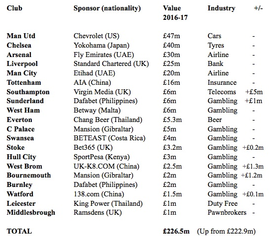 La sponsorizzazione non è ovviamente obbligatoria, ma di certo sarà profittevole. Una analisi realizzata da SportsPro – che ha intervistato il direttore della Zonale Sport Beadle – ha evidenziato come, da alcune ricerche indipendenti, il valore medio stimato del profitto da questo tipo di sponsor sarà di circa 3 milioni di pound a stagione, pari a circa il 20% di un contratto medio con il main sponsor. Calcio Finanza ha elencato i ricavi di ogni singola squadra di Premier per evidenziare come i frutti di questa novità saranno molto diversi a seconda che si tratti di Manchester United o Burnely.