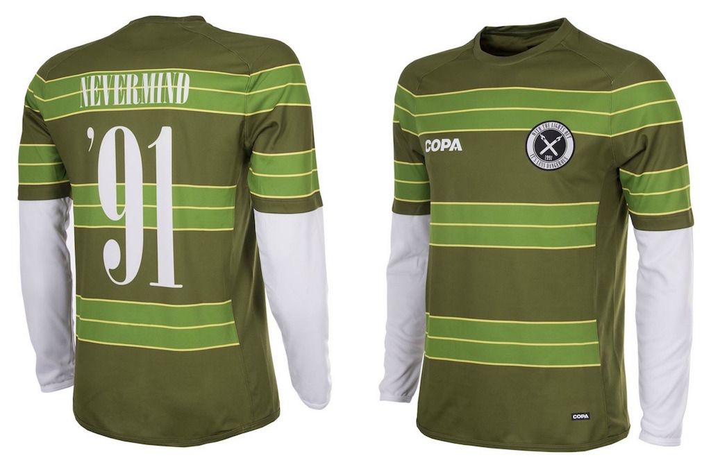 COPA sembra essere attenta agli anniversari e anche nostalgica della golden age del grunge ed ha ha infatti rivelato la nuova divisa “Smells Like a COPA Football Shirt”, le cui righe verdi vogliono ricordare la maglietta indossata da Cobain nel video di Smells Like Teen Spirit. Inoltre il numero 91 sul retro è riferito appunto all’anno di uscita di Nevermind, mentre lo stemma contiene il testo del ritornello (così spesso sbagliato) della più grande hit della band. Questo mix perfetto fra calcio e grunge è disponibile ora su copafootball.com.