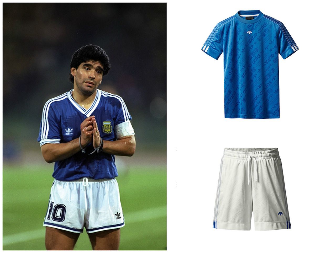 Pur essendo passata alla storia con una maglia firmata Le Coq Sportif, la storia stilistica della nazionale argentina è puntellata di partnership con adidas. Una di queste, direttamente dal Mondiale Italiano del 1990, ha finito per ispirare maglia e shorts del drop di Wang.