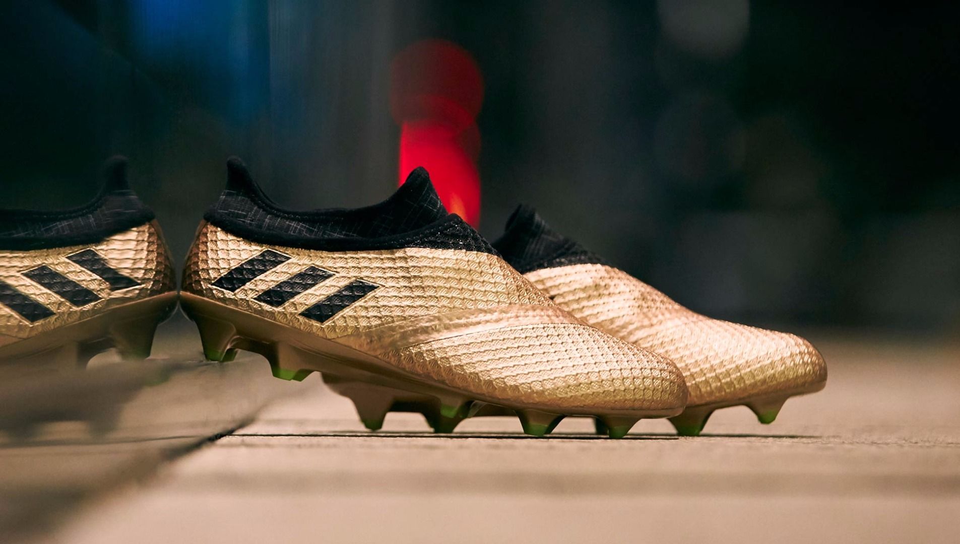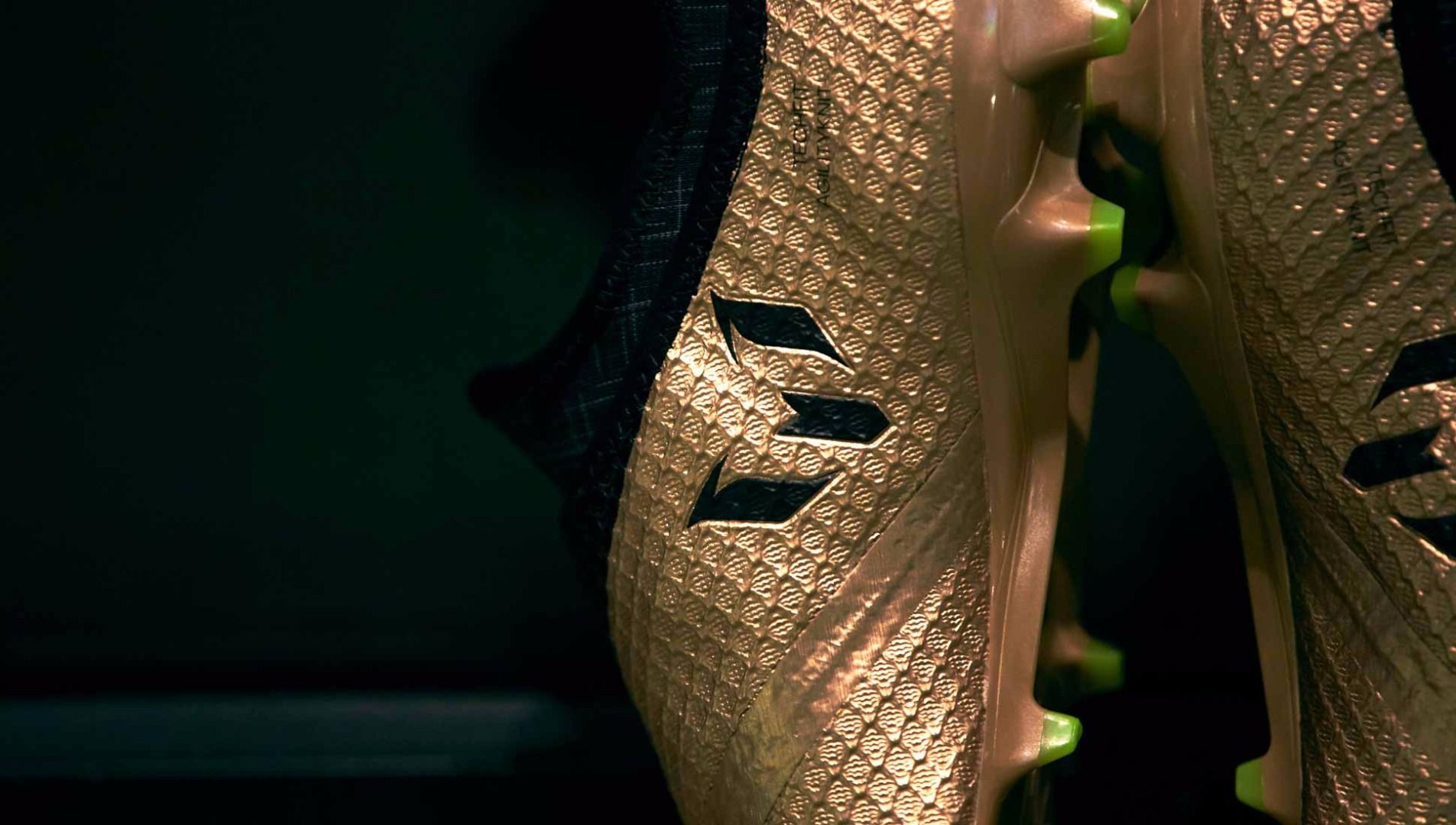 La nuova MESSI16 a differenza delle sorelle ACE e X avrà una colorazione in 'rame metallizzato', con 3 stripes nere e solo i tacchetti verdi. La tomaia flessibile agevola i movimenti più agili, la struttura avvolgente assicura una stabilità ottimale e la configurazione dei tacchetti migliora grip, velocità e agilità.