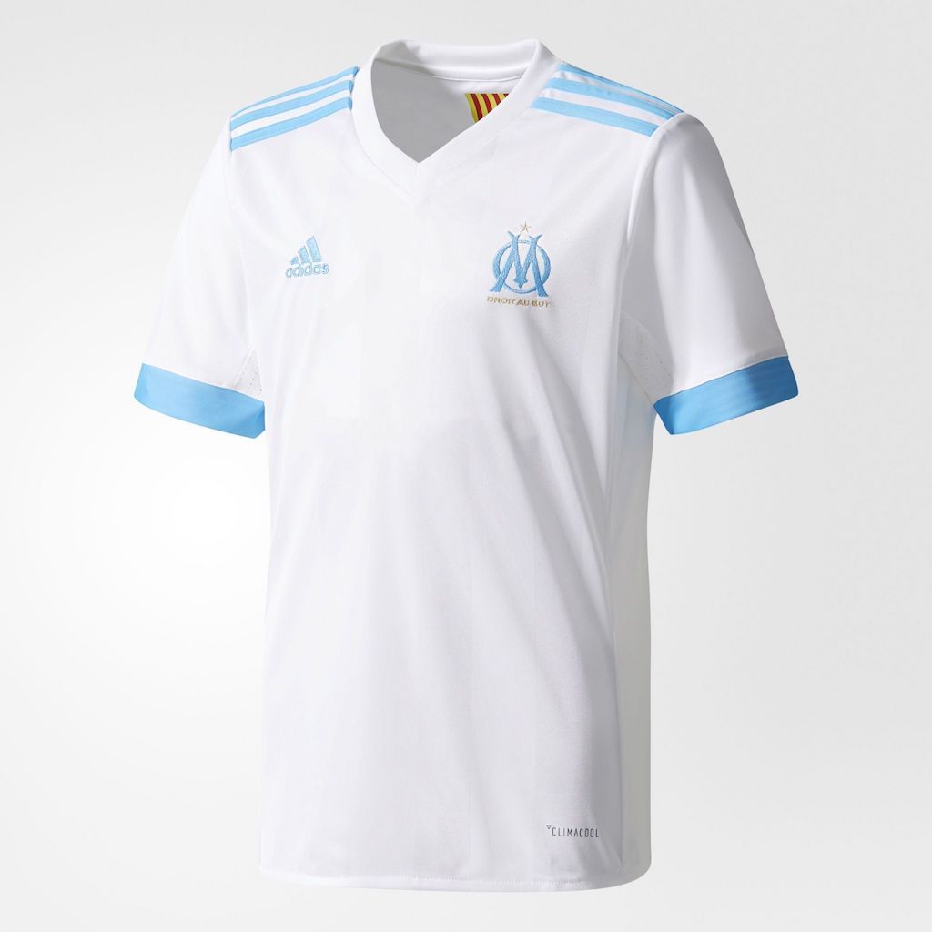 Il nuovo kit dell’OM è semplice ma allo stesso tempo accattivante: la prima maglia a tinta unita bianca è impreziosita dai soliti dettagli azzurri che hanno sempre contraddistinto il club marsigliese. Quest’anno è scaduto anche l’accordo tra il Marsiglia ed Intersport, lasciando il club francese libero di firmare un altro accordo di sponsorizzazione. Una ulteriore differenza rispetto al completo di questa stagione è il collo della prima maglia che diventa a V. Le three stripes tornano sulla spalla, abbandonando il fianco.